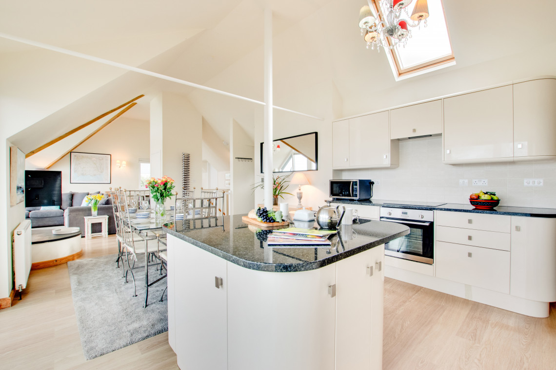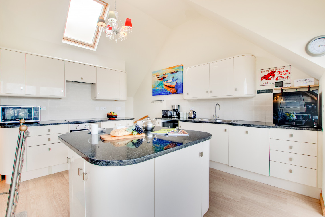 - Kitchen & Utilities: The kitchen, which features granite worktops, a central island and bi-folding doors leading out to the expansive deck, is equipped with an electric fan oven and hob, fridge, freezer, microwave, wine fridge and dishwasher.