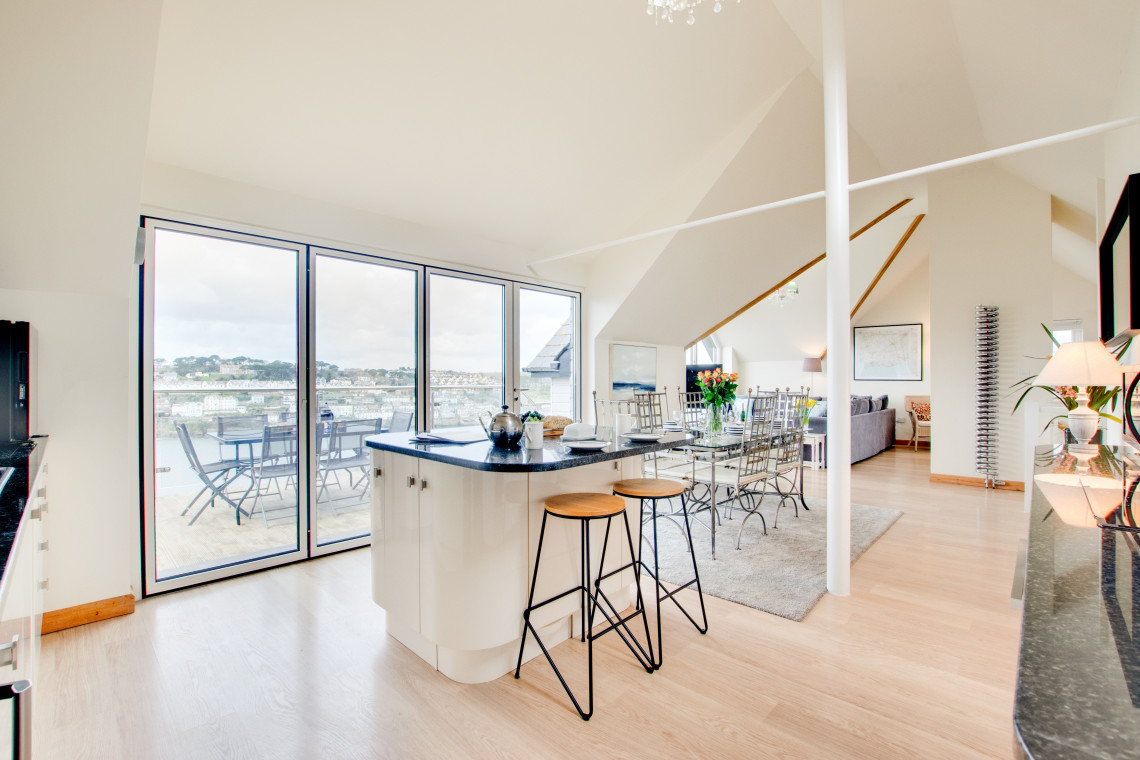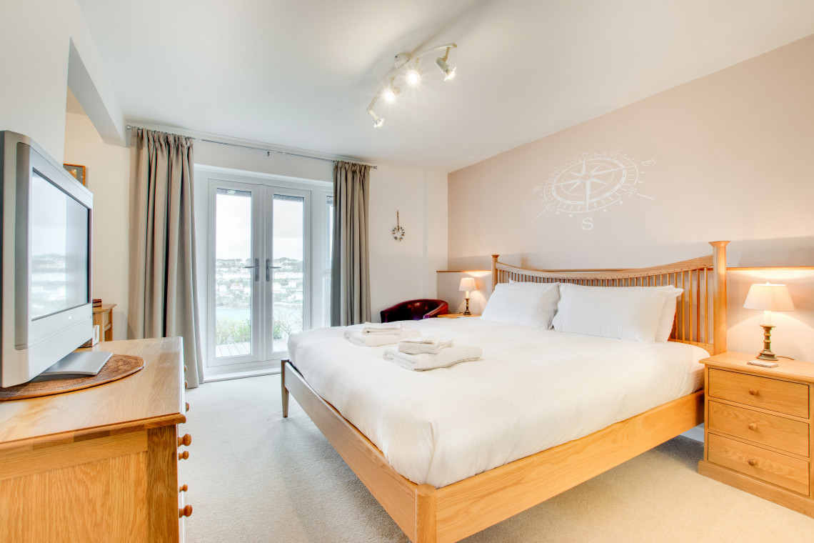 No 14 provides luxury accommodation for six, set high on the hill overlooking the River Fowey in South East Cornwall with local amenities close by. This beautiful detached house is well laid out and equipped to a high standard. Views from the deck are stunning and you can sit here and watch the sun go down. Providing three en suite bedrooms, a fabulous open-plan living space and even a special doggy shower.