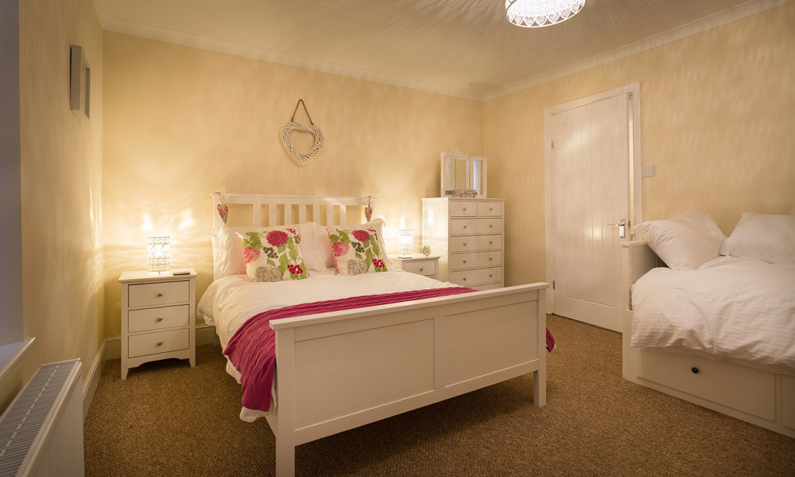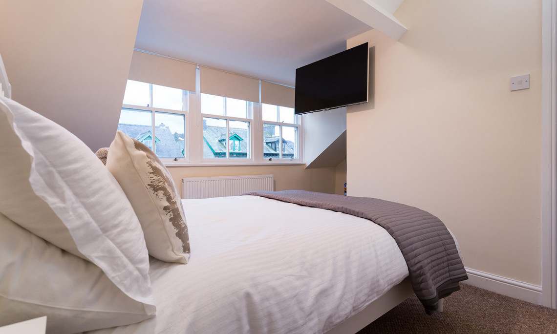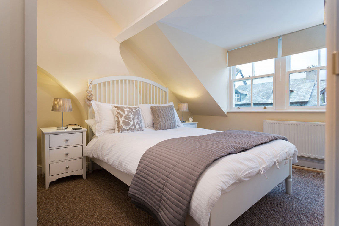 A traditional Victorian terraced house in the heart of the vibrant market town of Keswick. Decorated with a contemporary palette whilst retaining its period charm, Noble Cottage is the perfect self-catering holiday home for families and groups of friends. Step into a spacious hallway with traditional floor tiles and space to store walking gear. The welcoming living space features a fireplace, comfortable leather sofas and a handmade wooden dining table. The kitchen is modern, bright and well equipped. Head upstairs and you’ll find three sumptuous bedrooms; two are presented as doubles and the third can be presented as a twin or double. A spacious family bathroom and additional separate WC can also be found on the first floor. Large flat screen TV’s are provided in the living room and in two of the bedrooms. To the front of the house there is a small garden with relaxing bench, whilst the rear of the property features a furnished courtyard and additional shared garden. Keswick has all you need for a perfect self-catering holiday in the Lake District. For budding cooks Booths supermarket provides fantastic local produce whilst there are an array of delicious restaurants available if you prefer to dine out. The town is perfectly placed for keen walkers; take a gentle stroll along the shores of Derwentwater or enjoy an exhilarating climb up Skiddaw. From Keswick by car you can explore the beautiful neighbouring lakes of Ullswater, Bassenthwaite and Buttermere. Noble Cottage offers all the comforts of home in the heart of one the Lake District’s finest towns. Over three floors. Three bedrooms: 2 x second floor doubles with TV, 1 x first floor double or twin. Bathroom with bath, basin and WC. Shower room with shower, basin and WC. Kitchen. Sitting room with open fire, TV. Sitting room. Amenities for Rental Gas central heating, with log fire Electric oven and hob, fridge/freezer, washing machine, dishwasher, TV, WiFi Courtyard with bistro table, also shared garden area to the rear of the property Pets welcome Sorry, no smoking Shop and pub are a few minutes stroll.