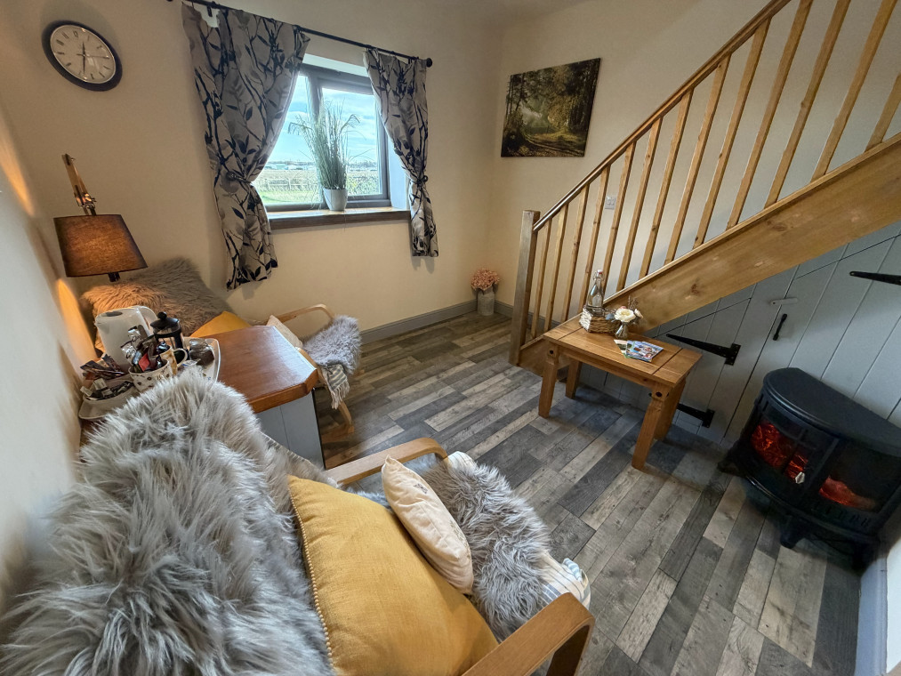 The Hayloft: A charming two-story retreat. It features a cosy downstairs sitting area—perfect for your dog to curl up in while you relax—and a peaceful bedroom located upstairs for a restful night’s sleep.