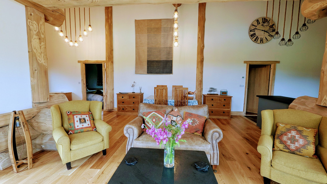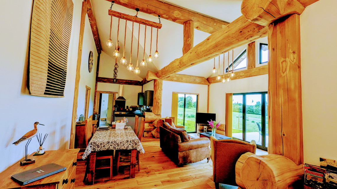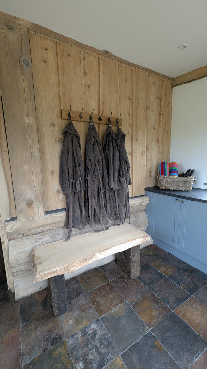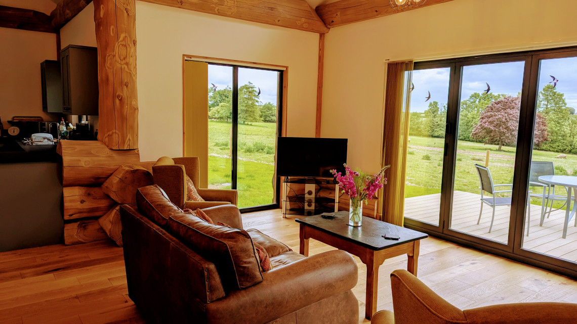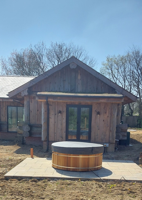 Read MoreMade from British-grown cedar and built by the experts at British Log Cabins, the passion that their craftsmen have for their trade is visible in the wonderful structures they create. North Beer Lodge, with its totally private hot tub, is pure luxury in landscape with views over Dartmoor all designed for your peace and tranquillity. North Beer Lodge is a unique building. The logs are truly magnificent in their dimension. The height of the vaulted ceiling is certainly a ‘wow factor’ with its statement lighting and internal logwork. The roof is local slate with a flat sedum roof over the boot room. There are two bedrooms, both with en-suite bathrooms and a large, open plan living area complete with wood burner and smart TV. The best, however, is the view from the bifold lounge windows leading onto decking where you can see Dartmoor on a clear day. The setting is glorious, in a field where sheep and lambs graze and rest under a variety of well-established trees, oaks, copper beach and others. The grounds of the lodge are largely put to grass and surrounded by a stock proof fence which is designed not to obstruct the view and the feeling of being deep in nature. This does mean that we are able to accept dogs - and you can relax knowing that your pets are safe. We have no restriction on size or number of dogs. EV charging is available along with plenty of room for parking several cars. Heated throughout with underfloor heating the lodge is cosy at all times of the year. Passing through the well-equipped kitchen to the boot room, where there are robes and towels for guests, the door opens onto the garden revealing a totally private hot tub where, at night, views of the Cornish dark sky can be seen. After a day’s exploring, plug your car or your bike in to charge up, step outside through the boot room with its sedum roof, pick up a towelling robe and a glass of bubbly and head into the wooden hot tub available through the seasons. The hot tub area is perfectly secluded and is positioned so that you can enjoy the views and the sunsets. The outdoor area is totally enclosed so no need to worry about your furry companions.