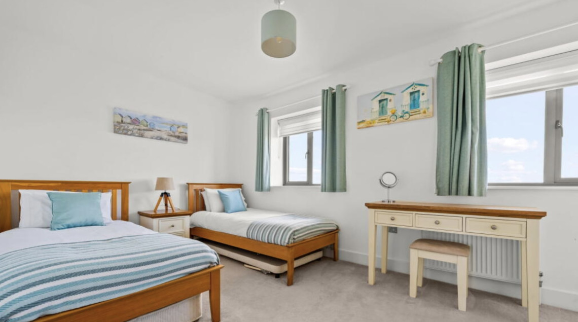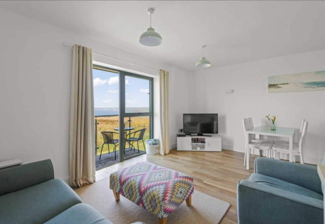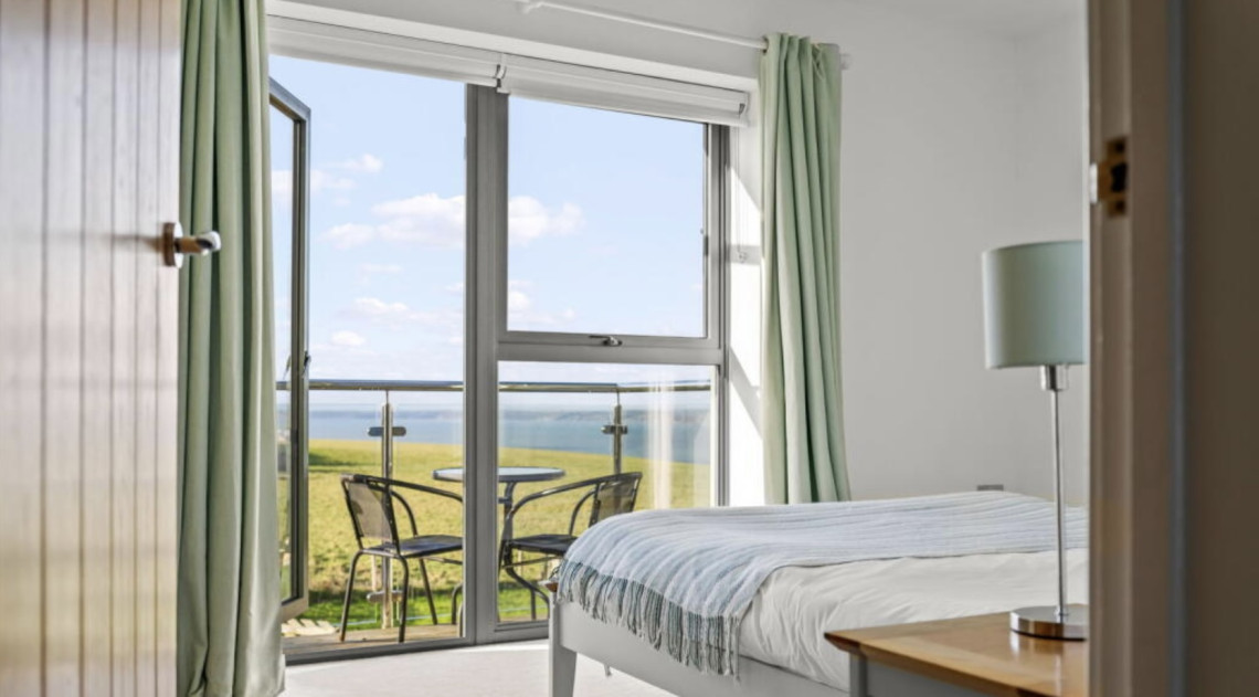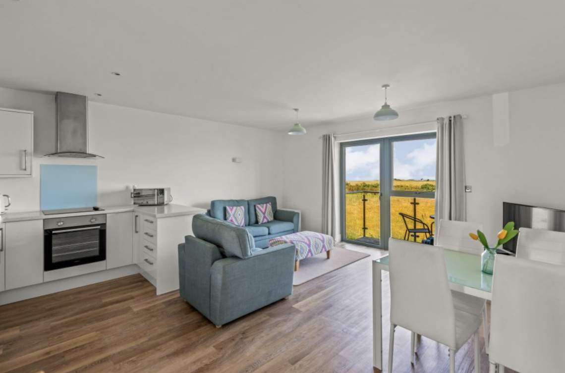 Ten Ocean Reach is a first floor apartment. The bedroom is king size. The open plan living kitchen area leads out onto a balcony, ideal for al fresco dining whilst watching the sun setting over Bigbury Bay. There is a sofa bed in the living area for 1 or 2 more people.