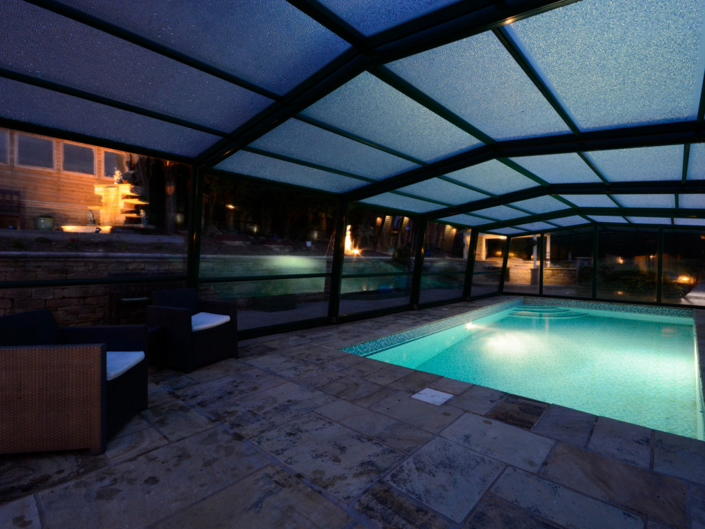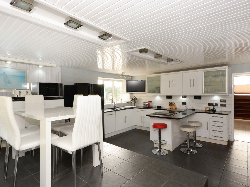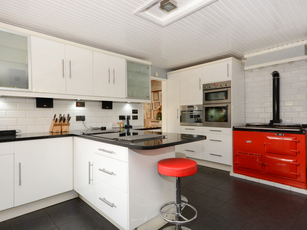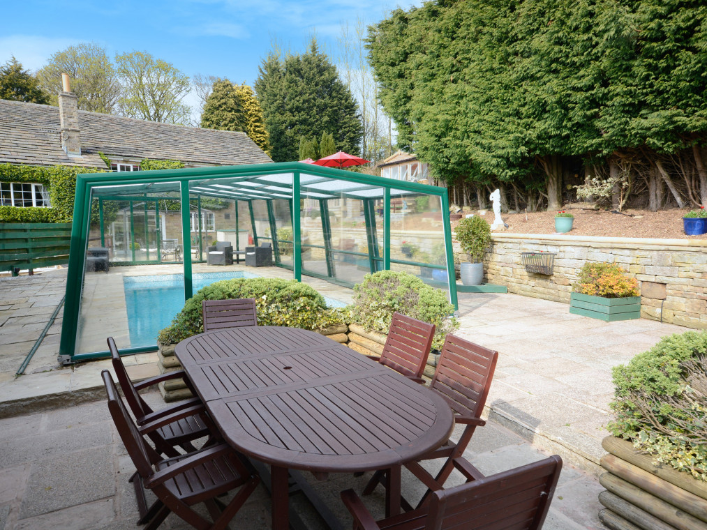 Resting on the outskirts of the charming town of Chapel-en-le-Frith in the heart of the Peak District is this incredible property, Old Barn Bowden Head, offering beautifully furnished rooms and luxurious facilities. Suitable for a large family or a group of ten, this marvellous abode hosts five bedrooms along with spacious and well-equipped rooms to relax within. Be greeted into the lofty hallway and find your way to the bright and impressive kitchen and dining room, enjoying a split-level layout, the gleaming white units hold a fantastic range of appliances on one side, including a striking red AGA cooker, an American fridge freezer and on the other side an elevated level holds the dining table. Use this room to gather in the mornings, eating a delicious breakfast at the breakfast bar, cooking for the family, and organising plans for the coming days, with a utility room that has additional tall larder fridge and chest freezer for extra storage on this floor too for all you need for a self-catered stay, the utility room also houses a second dishwasher. Head down the open-tread stairs to the lower-ground-floor and come to the fantastic cinema room, a snug space complete with a huge corner sofa and a large cinema projector screen resting above the open fireplace, perfect for having a family movie night together. Next door is the games room, where a wall-mounted TV, study desk and full size pool/snooker table all await you to delight in some creative or family competition. Move up to the upper-first floor, another level in between the ground and first floor, home to the living room/diner, where a beautiful feature stone wall boasts a woodburning stove, with plush seating and a large TV arranged around it beneath a retro wood panelled ceiling, you can enjoy the homely feel of the classic interiors. For special occasions and celebratory meals, make use of the dining table which seats 12 guests so there is space for all. The wonders of this property continue outside, where a heated swimming pool provides a wealth of entertainment for all ages, enjoy splashing about with the children on warm summer days, before settling on the patio terrace for a refreshing drink in the outside bar with another American fridge freezer, and also an adjacent toilet and undercover BBQ. With several other spaces to enjoy including a lawned area, and a timber decking with a fire pit where far-reaching views across the Peaks provide the perfect backdrop. When it’s time to get some rest, enjoy choosing from one of the five bedrooms resting on the first floor and upper-first floor, with the master bedroom benefiting from an en-suite bathroom, vaulted ceilings and exposed beams, offering a delightful place to wind down in at the end of the day. There’s another double room and a twin room on this floor, while up to the upper-first floor brings you to two more double rooms which feature sloping ceilings. A ground-floor shower room and a first-floor bathroom provide excellent spaces to freshen up, choose to enjoy a long soak after a brisk walk in the Peaks or a quick shower before heading out for the evening. If you can tear yourself away from this incredible base, head out into the Peaks to begin getting to know one of the most beautiful areas of the UK, find endless routes and trails all around with varying degrees of difficulty to suit all, you can then find a cosy pub to retreat to for a well-earned pint and pub dinner. Head into Chapel-en-le-Frith and wander around the quaint shops and local businesses, or venture further into the Peaks to Hayfield, popular with walkers who are attracted by its close proximity to Kinder Scout, serious walkers head east out of the village, up and over the green foothills to the russet expanse of the Kinder Plateau, Pennine Way and Snake Path, whilst families (and those who enjoy more gentle rambles) head west along the beautiful Sett Valley Trail towards New Mills. Nearby is a historic of Buxton offering thermal spa town offering natural wonders like Poole's Cavern, host to several festivals each year and enjoying a rich history that you can immerse yourself in at the Buxton Museum & Art Gallery, along the Buxton Heritage Trail and the famous Georgian Crescent. Old Barn Bowden Head makes for a wonderful family retreat providing all you need for a marvelous self-catered stay in the Peak District. Set over five floors. Five bedrooms. 1 x double with en-suite spa bath, walk-in shower, basin and WC, 1 x double with vanity unit, 1 x twin, 2 x upper-first-floor doubles. First-floor bathroom with bath, shower over, basin and WC. Ground-floor shower room with shower, basin and WC. Kitchen/diner. Utility. Upper-ground-floor living room/diner with woodburning stove. Lower-ground-floor cinema room with open fire. Lower-ground-floor study/games room. Pool house. Study Amenities for Rental Electric central heating with woodburning stove and open fire Electric double oven and hob, microwave, American fridge/freezer, AGA range cooker, 2 dishwashers, TV, cinema projector screen, pool table, WiFi Fuel and power inc. in rent Bed linen and towels inc. in rent Off-road parking Lawned garden with patio area and raised deck area with fire pit, timber decking with water feature and fire pit, barbecue, and outdoor covered heated swimming pool (swimming towels not provided) Two well-behaved pets welcome Sorry, no smoking Shop within 2 miles, pub within 0.8 miles