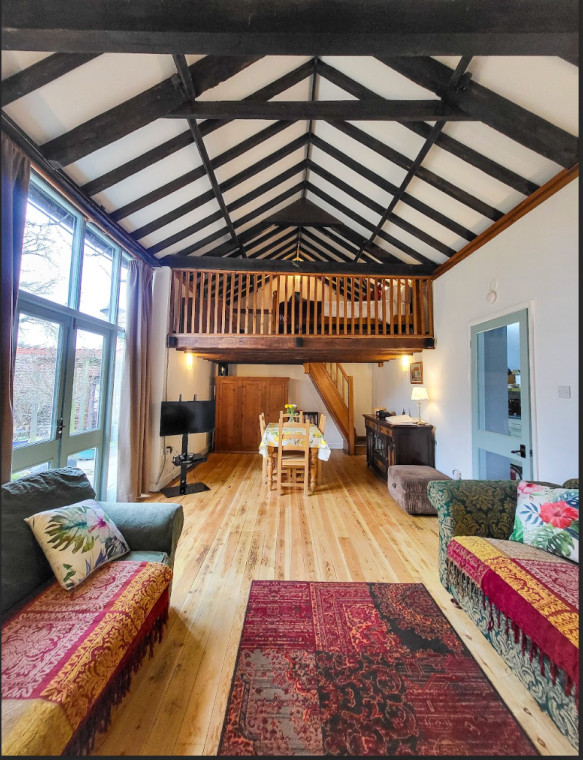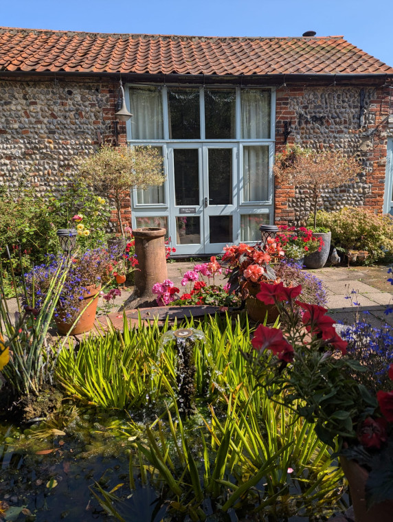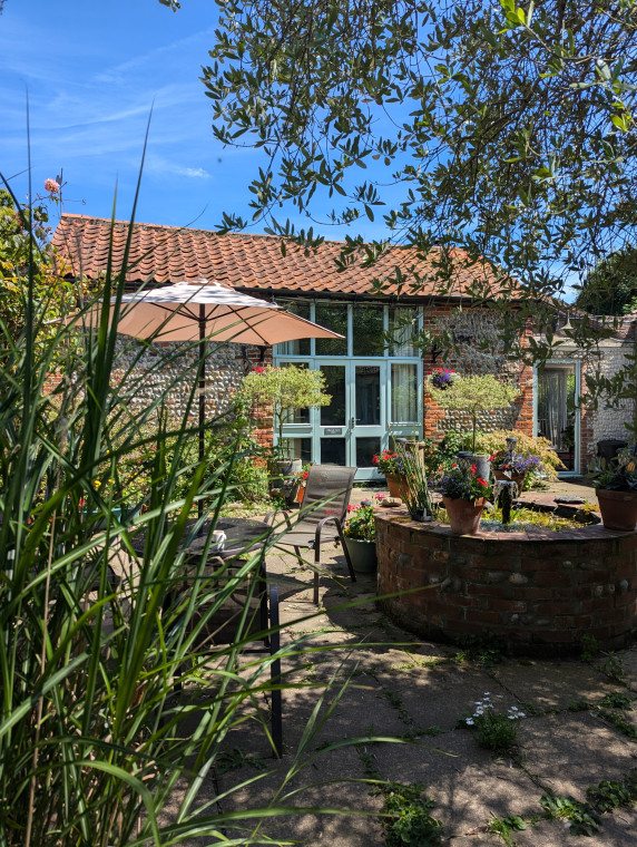 Read MoreOllands Farm Barn has been restored to a very high standard and features beamed, vaulted ceiling, wood burning stove, central heating, comfortable King size bed in the galleried bedroom. Fully fitted kitchen and wet room . There is a flint walled courtyard which is shared with the main farm house. At the rear of the Barn is a private and secluded garden fully fenced . Totally safe for your dogs and peace of mind.