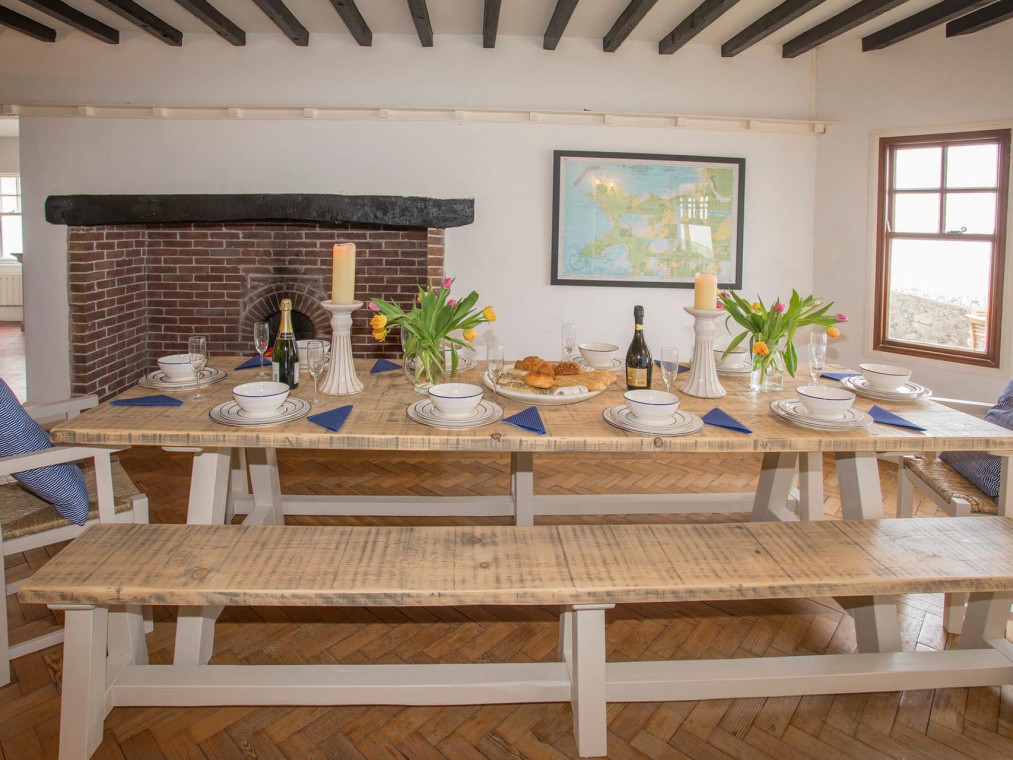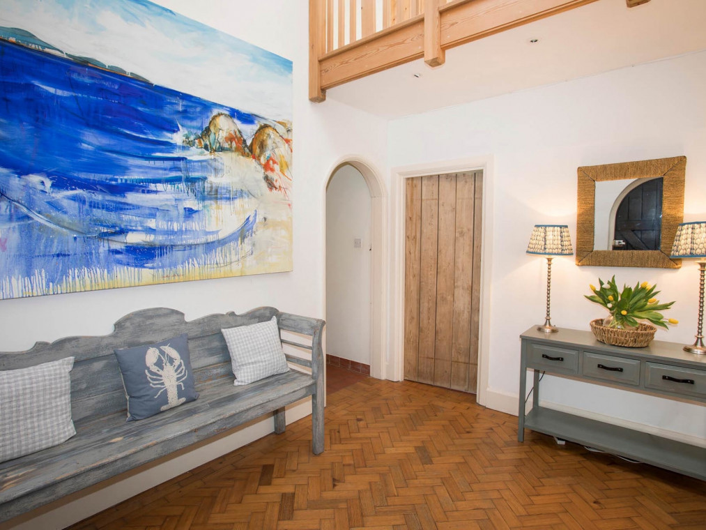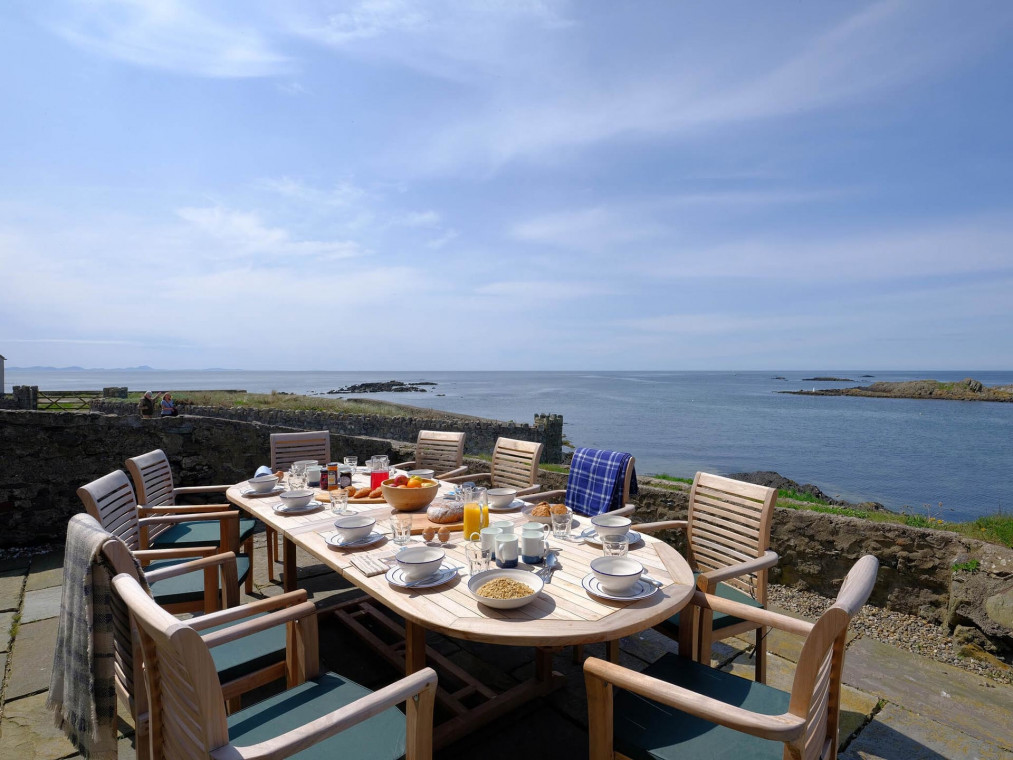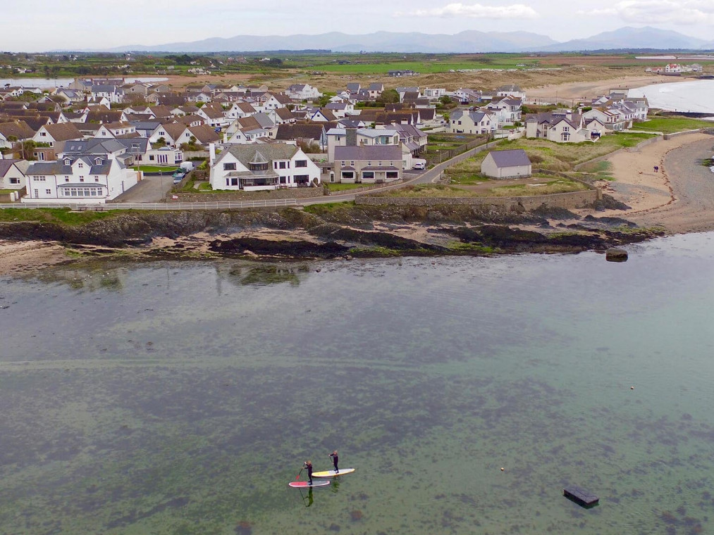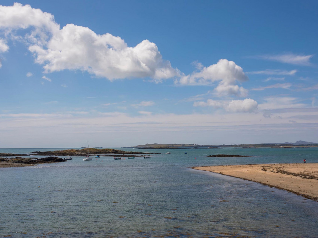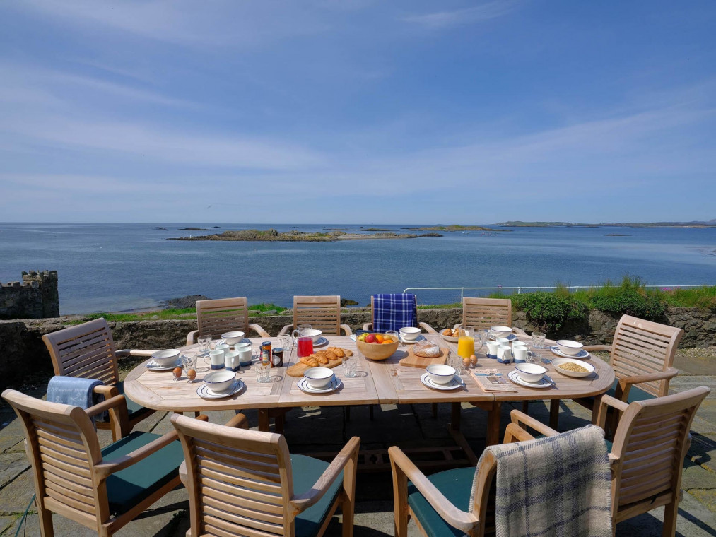 Set in the picturesque and popular village of Rhosneigr, on the west coast of Anglesey, Oonavara is quite simply the holiday house to enjoy time with friends and family. With rooms of all shapes and sizes, there is always a place to relax and enjoy the views of Rhosneigr beach. The wonderful view is a great distraction from cooking in this well-equipped kitchen. The AGA makes cooking so much easier, together with an electric cooker and hob, American style fridge and freezer and all the utensils you need for preparing delicious meals. The breakfast room, which is part of the kitchen, also enjoys the glorious view. The light pours into the first sitting room. There are masses of comfy chairs and an open fire for chilly wintry nights. Leading off this room is the second sitting room - and what a room this is! A spectacular Arts and Crafts fireplace warms this double height room which opens up to the first floor with a gallery above, and a delightful sunroom to the front. It is the perfect spot for quietly sitting and soaking up the view whilst listening to the Oystercatchers on the beach. There is a wet room downstairs with a bath, loo, wash hand basin and shower. There are two additional loos downstairs. To any children’s delight, upstairs there is a Den with a TV, games and a football table. There are six bedrooms. Three double bedrooms, two twin rooms and a single bedroom. The fireplaces in some of these rooms are exquisite. The bedrooms are all spacious and light. The front rooms all enjoy breathtaking views of the sea. The rooms on the garden side of the house have the mountains of Snowdonia as the backdrop to their view, but all have uninterrupted sea views! The upstairs bathroom has a bath, loo and wash hand basin. You'll find a large enclosed garden with shrubs and flower beds. This is another place where you will find a spot to stretch out on a deck chair and read your book. The garden at the back of the house is spacious enough to play a game of football or cricket. It's also sheltered and private so even on a slightly windier spring or summer day, you could still make the most of the fabulous weather and enjoy a BBQ together. The terrace to the front of the house has the most incredible views across to Snowdonia and it's the perfect place to enjoy a sundowner. The outside space is definitely as impressive as the joys of the inside decor in this beautiful home from home. There is a low wall along the front of the house which is about 2ft high with a big 8ft drop the other side. Please be aware for young children or dogs. Oonavara is a perfect holiday house for relaxing with friends or family. The careful mix of Arts and Crafts and 21st Century essentials make this a unique place to have a very happy holiday. Six bedrooms: 3 x double, 2 x twin, 1 x single. Family bathroom with bath, WC and handwash basin, wet room with bath, WC, shower and handwash basin. 2 x ensuites with bath, shower, WC and handwash basin, 1 x ensuite with shower, Wc and handwash basin. 2 x cloakrooms. Kitchen with AGA, electric cooker and hob, American style fridge and freezer, dining area. Three sitting rooms, first with chairs and an open fire, second, with an Arts and Crafts fireplace and a delightful sunroom to the front, upstairs to children's delight a TV Den with TV, games and a football table. Enclosed garden, large lawned area, BBQ. Garden furniture. Amenities for Rental Sea views, Wifi, open fire, den room with TV, full sized table football, central heating, Aga, American fridge freezer, electric cooker and hob, microwave, dishwasher, TV in kitchen, tumble dryer, washing machine, travel cot, high chair, stairgate, clip on high chair, ample parking - boat welcome. Short walk to restaurants and amenities. 2 well behaved dogs welcome.