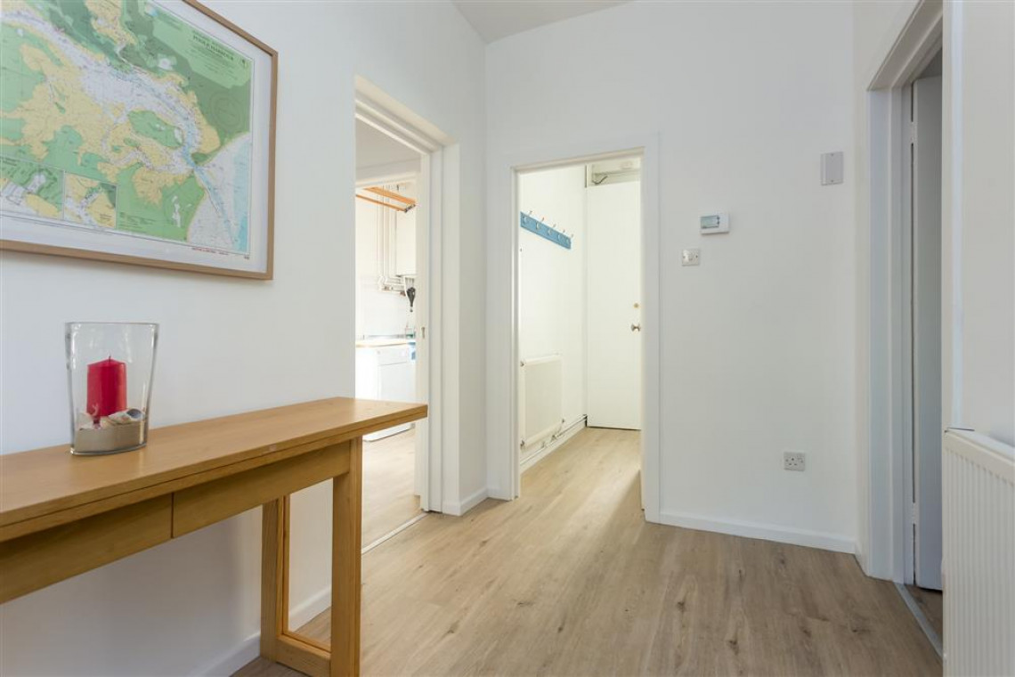 Accessed from the living room, the garden is pretty with mature planting and there is a decked area with outside seating for six.