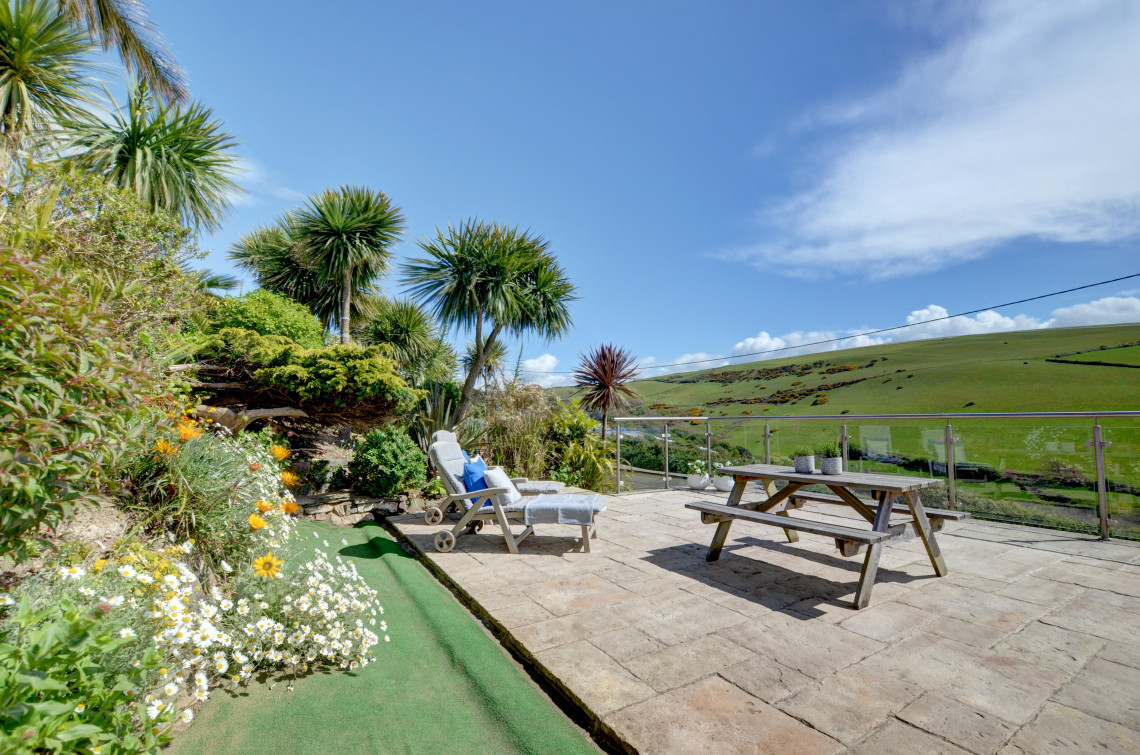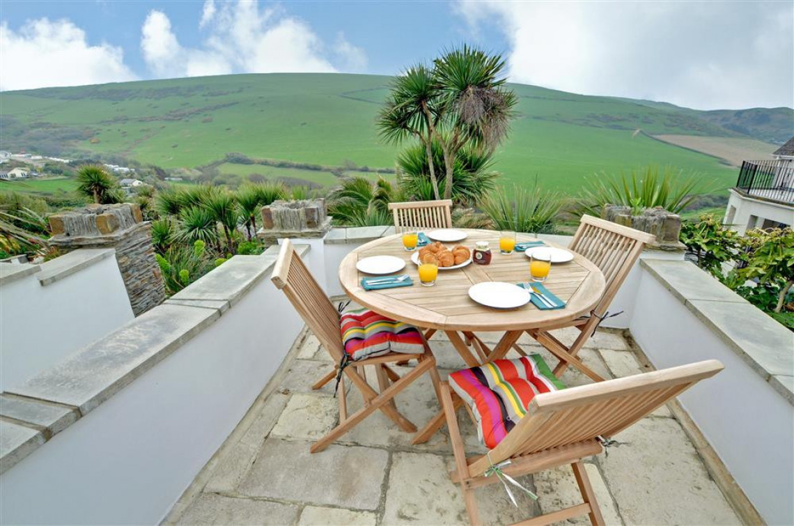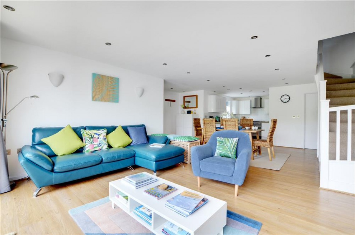 A spacious newly developed property nestling on the hillside overlooking Woolacombe Bay. Beautifully presented and furnished in a contemporary style throughout. Steps and a gently sloping pathway lead up to the property through delightful Mediterranean style front terraced gardens; a spacious lower terrace offers wonderful sea views. A large open plan living space and two attractive bedrooms make this an ideal property for both couples or families.