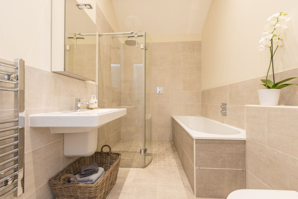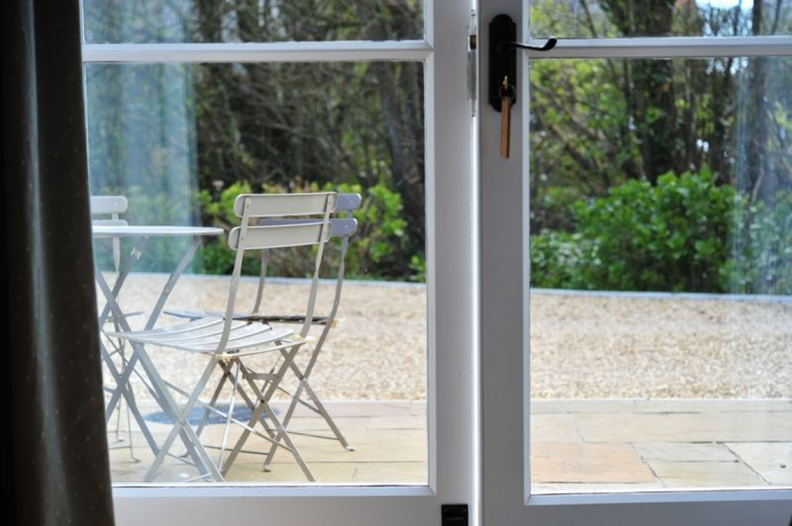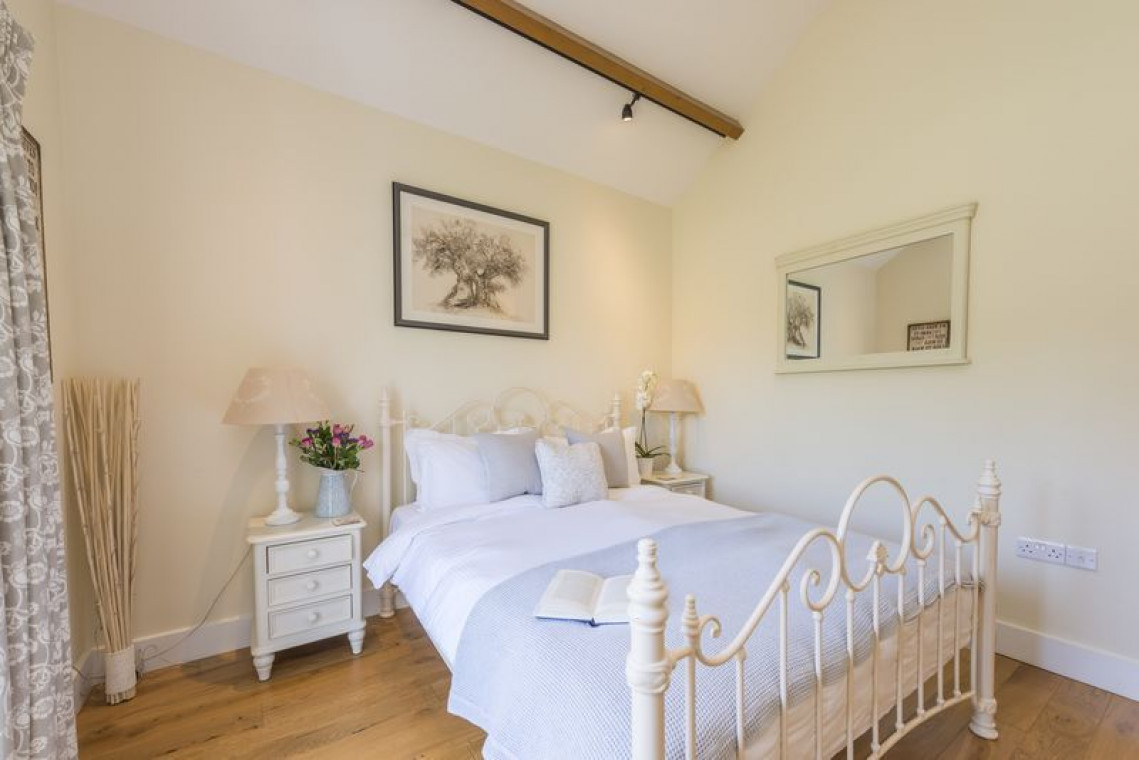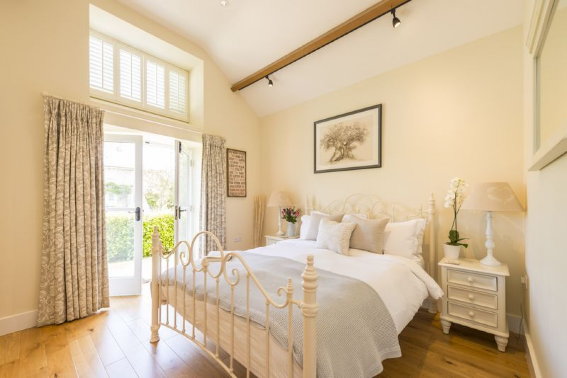 The large contemporary bedroom is light-filled with its vaulted ceiling and french doors leading out on to an intimate patio, this is perfect for enjoying a lazy lunch or a tasty supper and a glass of champagne. The contemporary bathroom invites you to enjoy a leisurely pamper with a soak in the luxurious bath, and there is a separate, ultra-modern invigorating shower too.