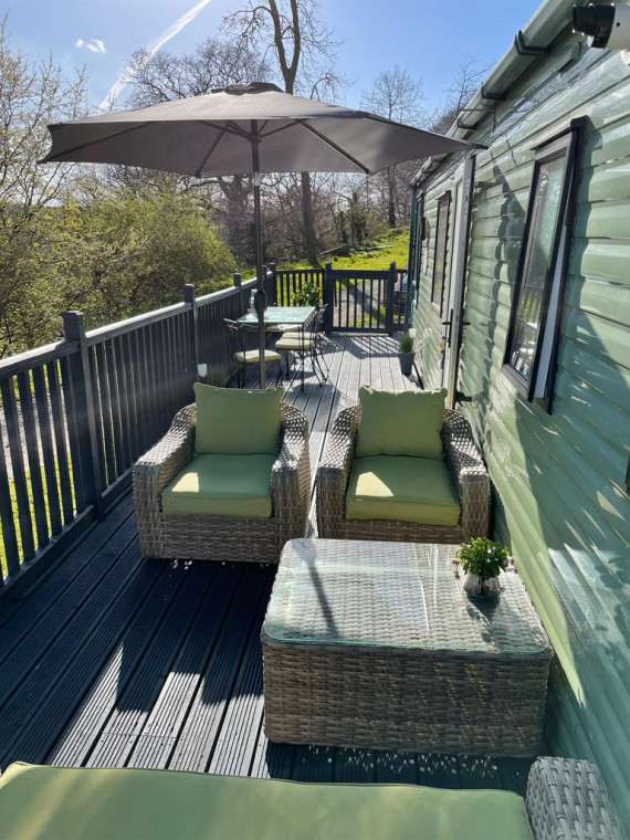 We have a seated area for relaxing at night, an outside dining table and a storage container where we provide you with buckets and spades and 'holiday' bits and bobs. Not only saving you money, but the planet from excessive plastic waste.