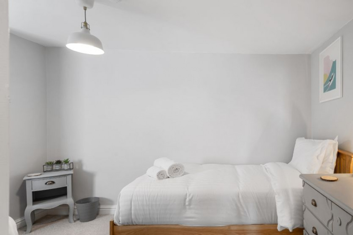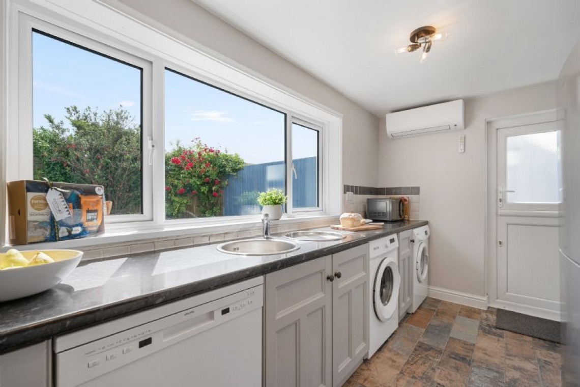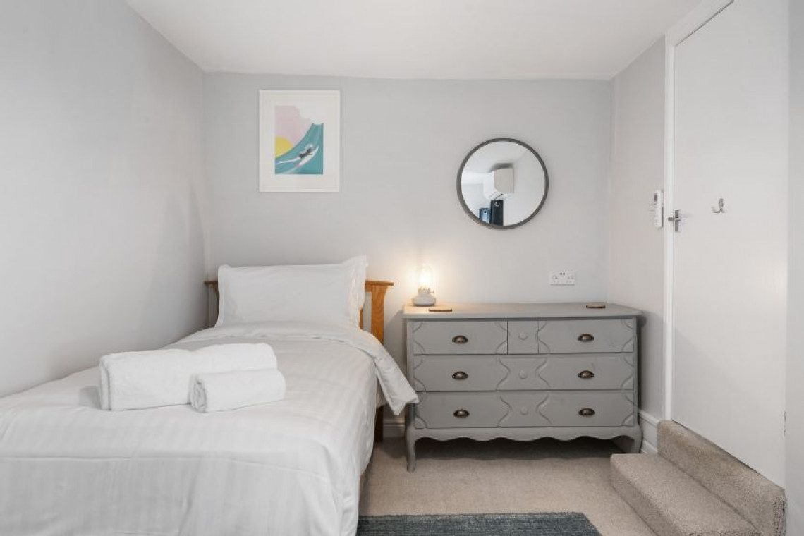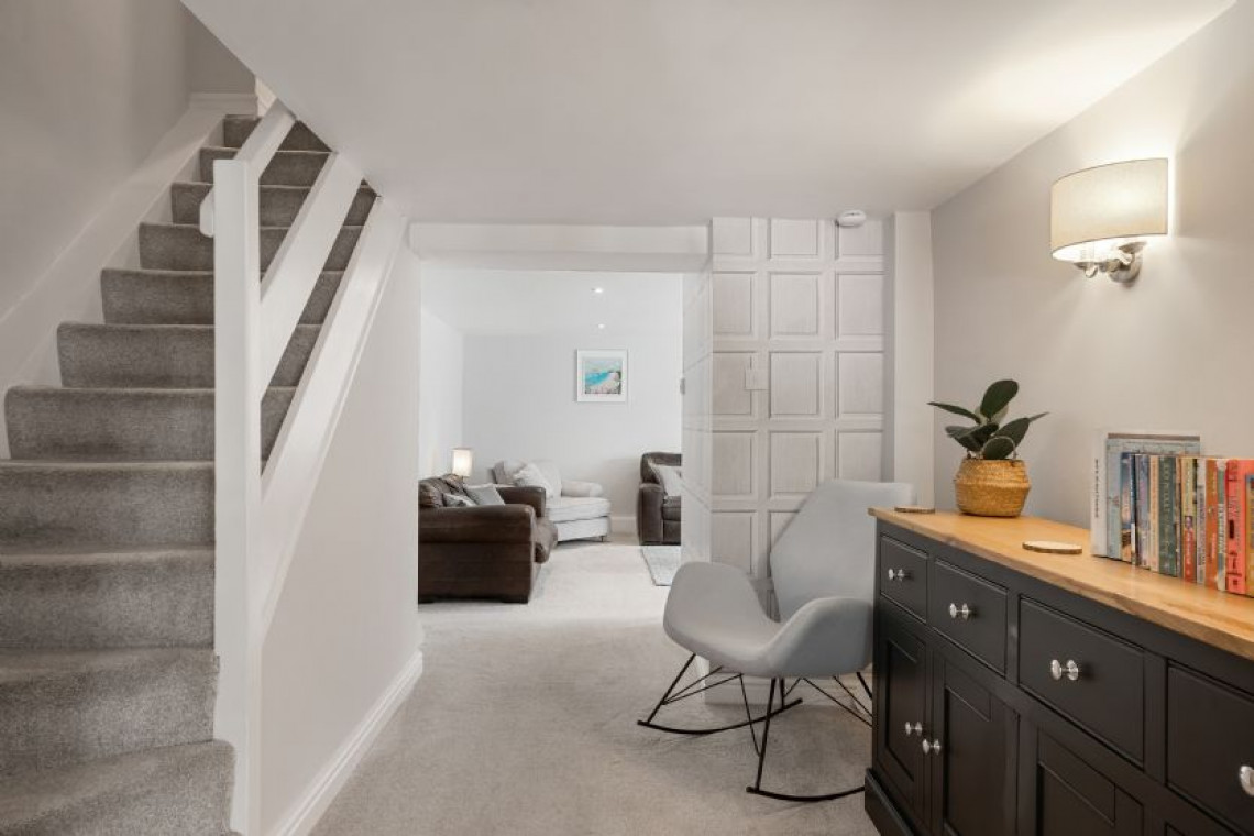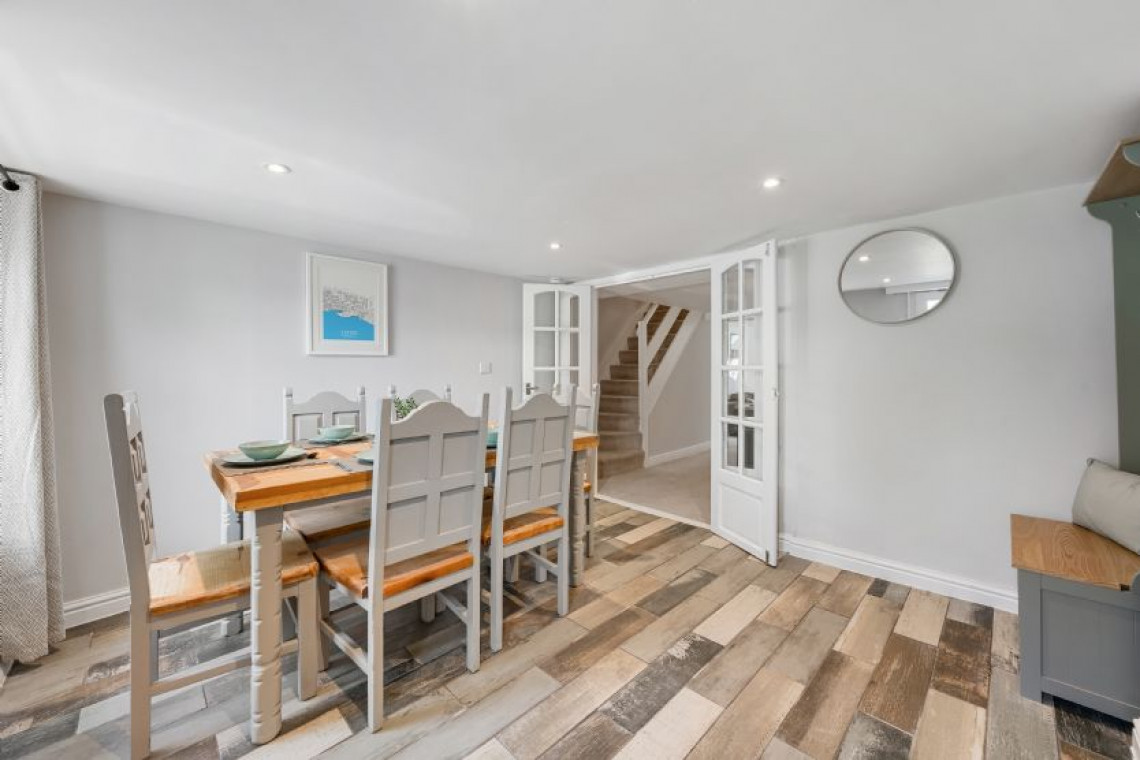 On entering the property you will be greeted by the cosy dining room with its large table and seating for six. Gather round and enjoy lazy breakfasts or homemade feasts which can be easily prepared in the galley style kitchen, fully fitted and well-equipped with everything holiday makers could need. After long days at the beach or exploring the beautiful North Cornwall coastline come back and relax in the lovely sitting room. Get cosy on the comfortable sofas and warm up by the large wood burning stove while enjoying your favourite tipple. At the bottom of the stairs is a large hallway with a cupboard full of board games perfect for those quiet evenings in with the family.