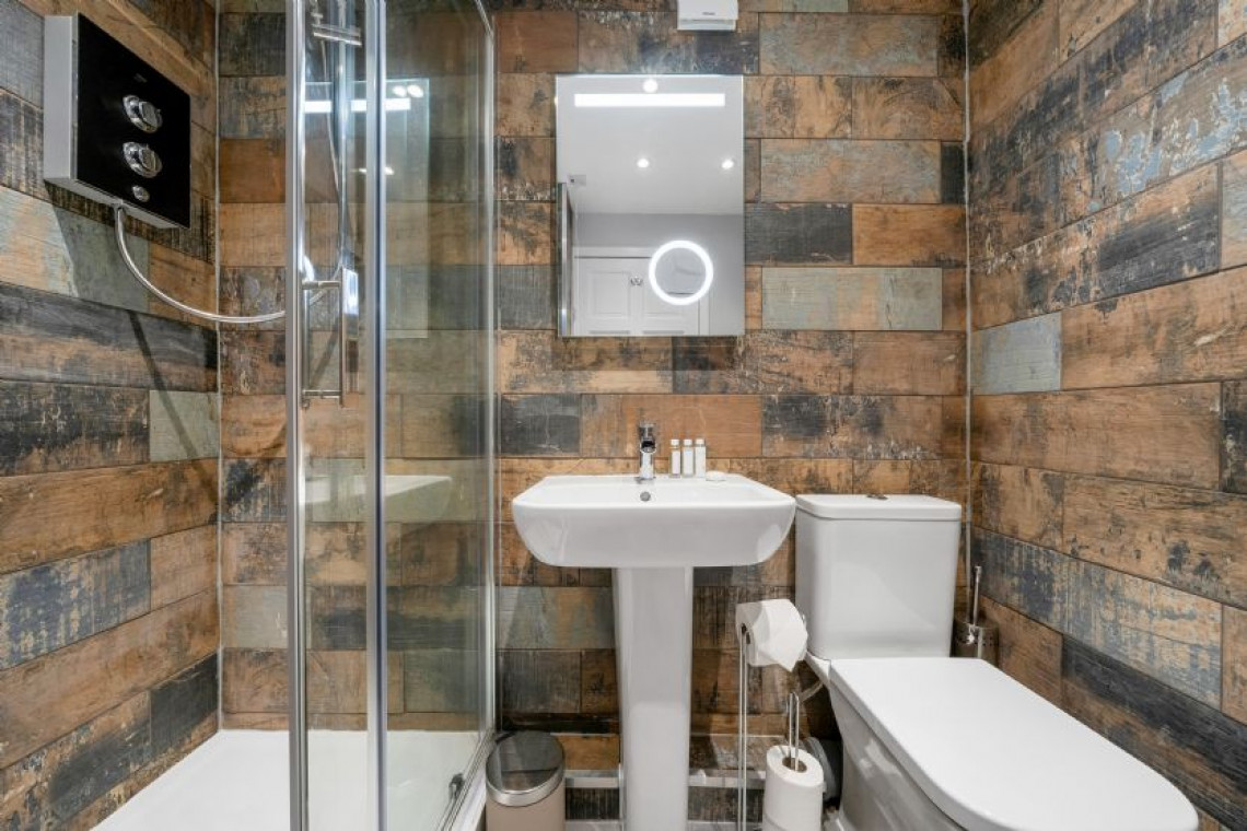 Upstairs are three good size bedrooms; one cosy twin room with two single beds, and two plush king-size bedrooms. The bedroom at the rear has double aspect windows overlooking the garden and surrounding countryside, also benefiting from its own en-suite shower room. The other bedrooms are serviced by the modern family shower room.