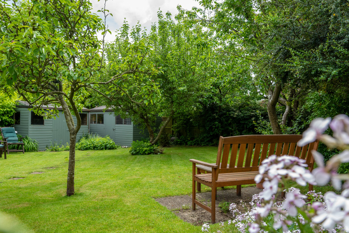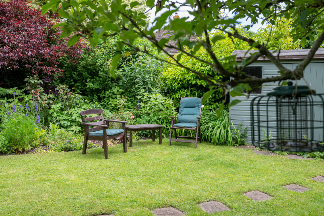 Outdoors: There is an enclosed large garden with two seating areas with garden furniture, a pond and greenhouse