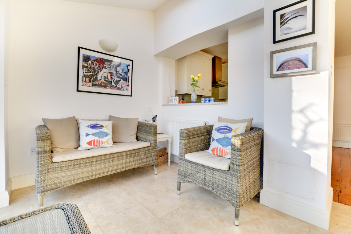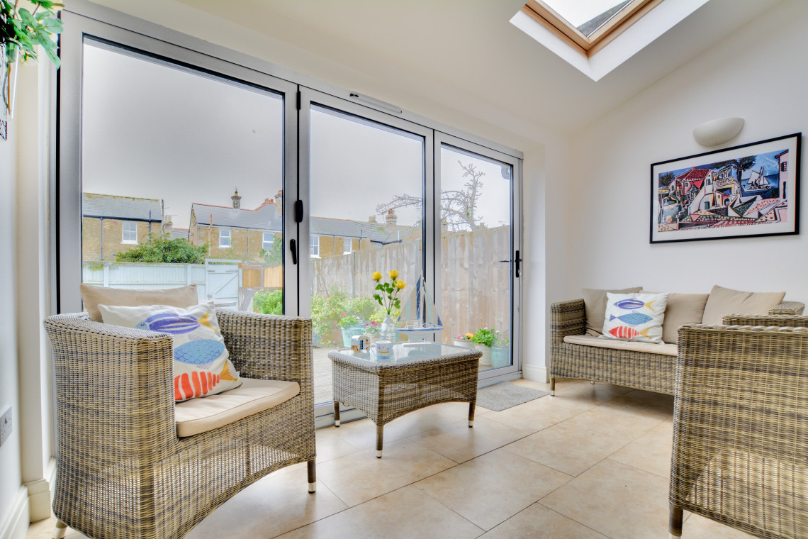A light, bright, seaside holiday home with sunny garden room and bifold doors onto the garden and paved seating area, plus a cosy sitting room with wood burner. The property sleeps 4, in 2 bedrooms, 2 shower rooms, sitting room with wood burner, an open plan kitchen/dining room with garden room. Free on-street parking is available. Whitstable is a fabulous mix of traditional working harbour, famous for its oysters and a contemporary and eclectic arts and music scene.