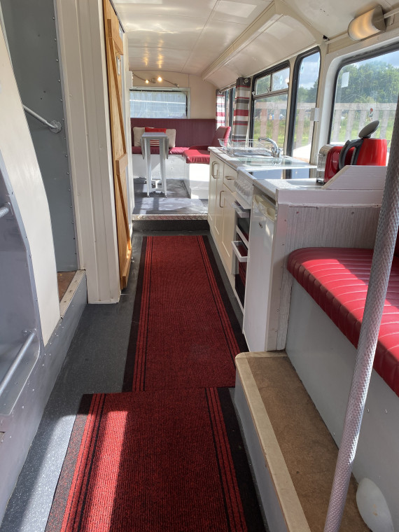 Three bedrooms in each bus upstairs, kitchen area has cooker with grill, oven, and hob, fridge, kettle & toaster. There is also dining/living area with tv/dvd player.