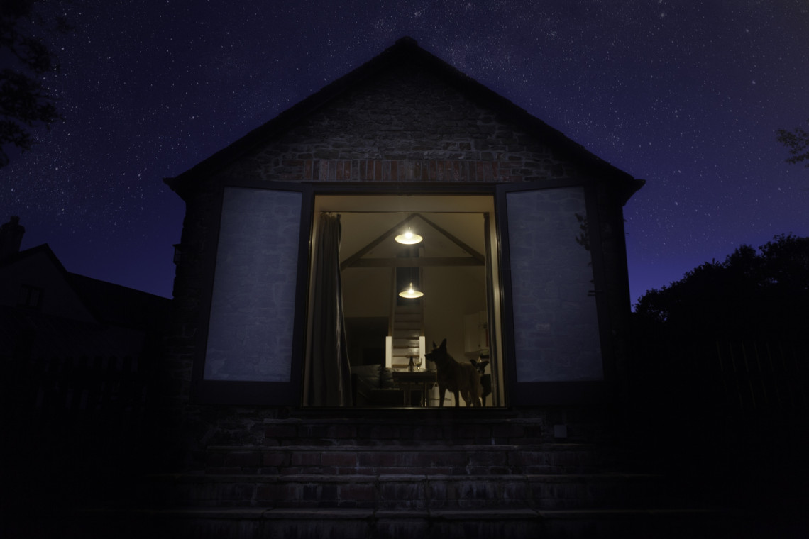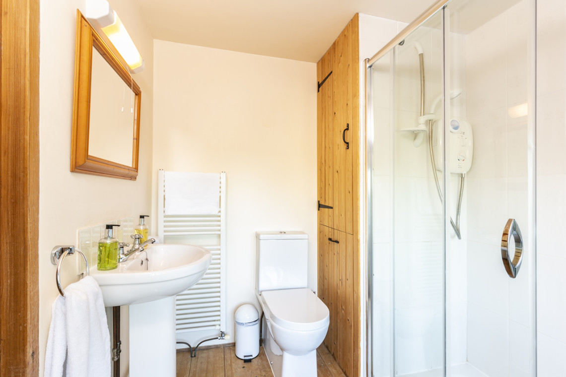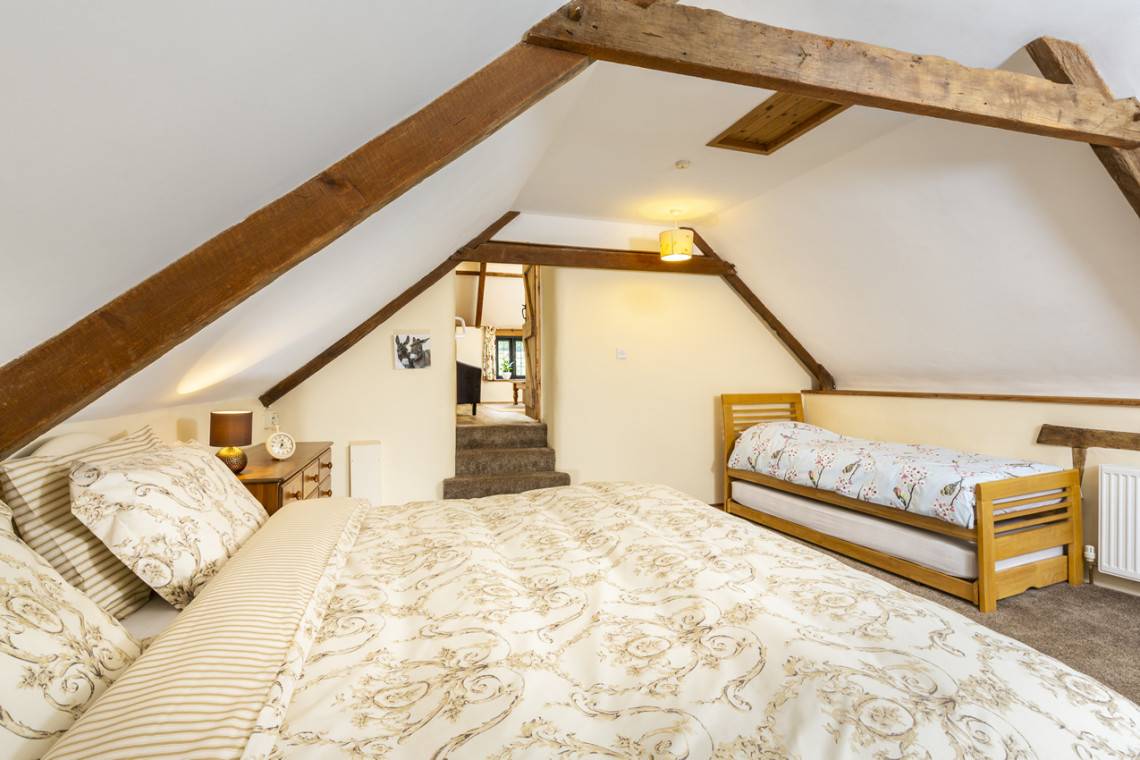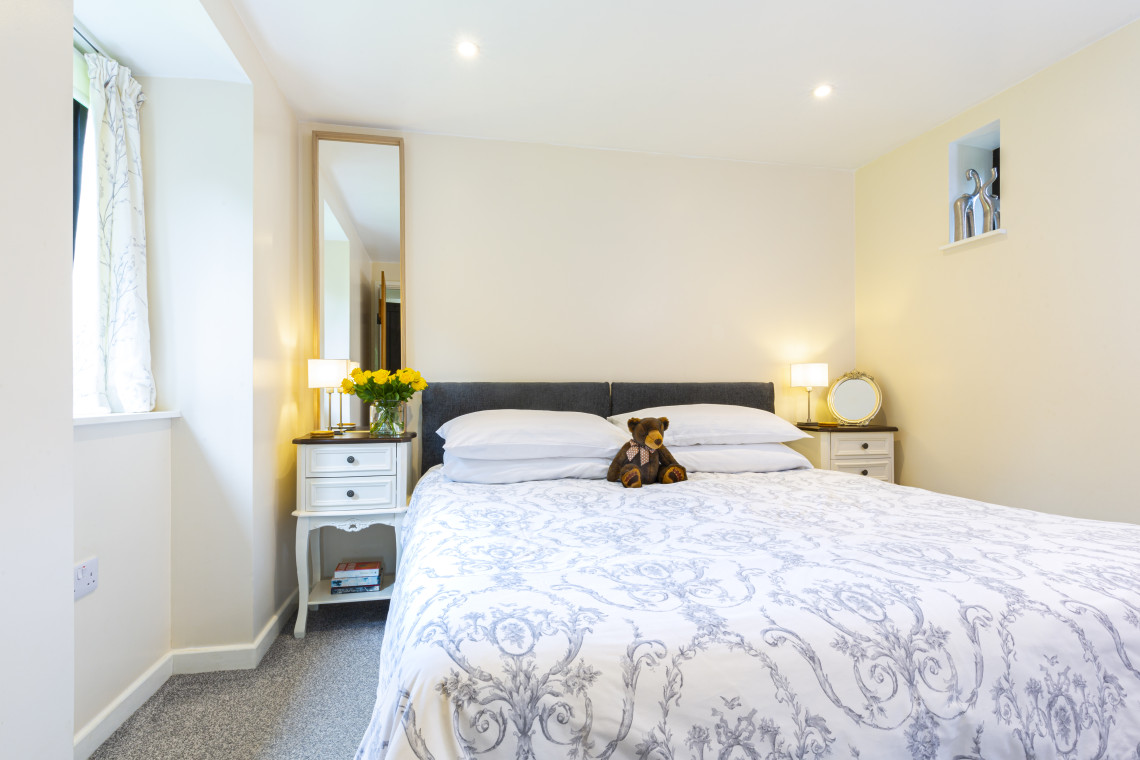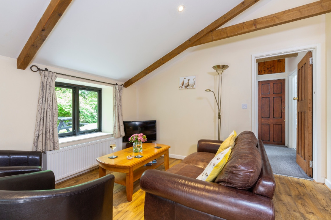 Buttermilk cottage has a master bedroom with super king size bed that also splits into two standard single beds. The upstairs bedroom is perfect for children. A mezzanine room, the ceiling is low but acts as a den for kids. The cottage has a fully equipped kitchen, hotel style bathroom and even its own porch to keep your boots dry. Buttermilk also features a fully enclosed lawned garden with overhanging apple trees. The French doors of the lounge open onto the BBQ terrace with brick BBQ, picnic table and fantastic views across the wooded valley.