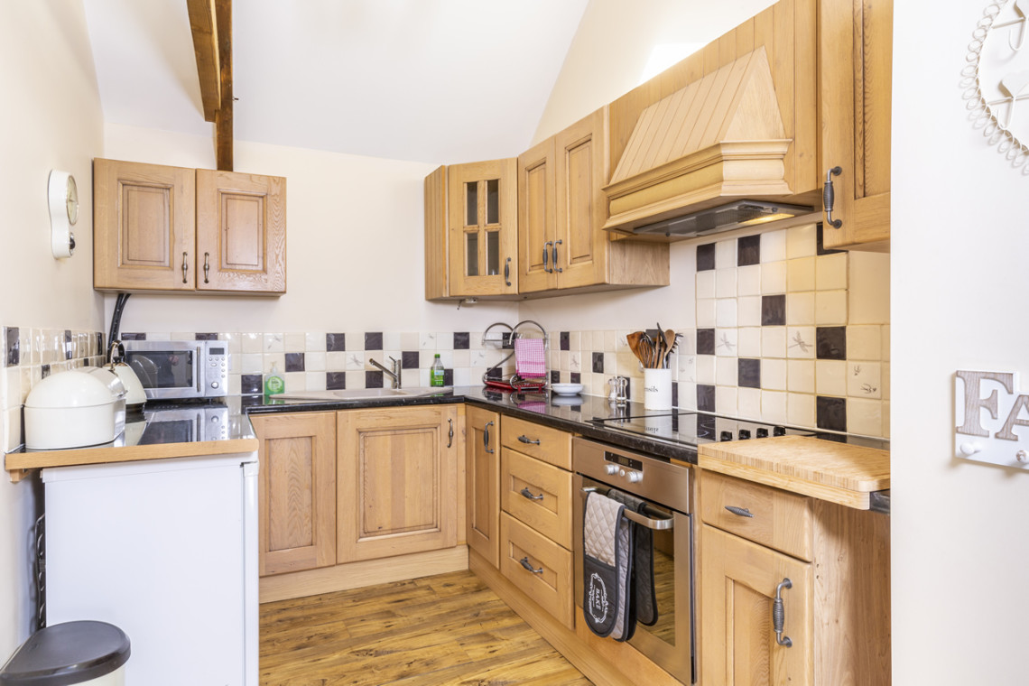Stables cottage has two bedrooms. The master bedroom has a king size bed opening to the en-suite hotel style bathroom. The second room has bunk beds. The fully equipped kitchen has every utensil you could hope for. The lounge and dining area has windows overlooking the enclosed garden and woodland with BBQ and picnic bench.
