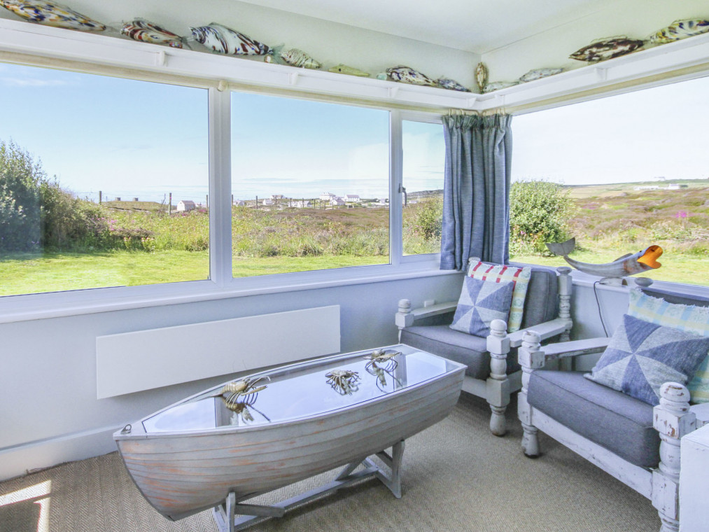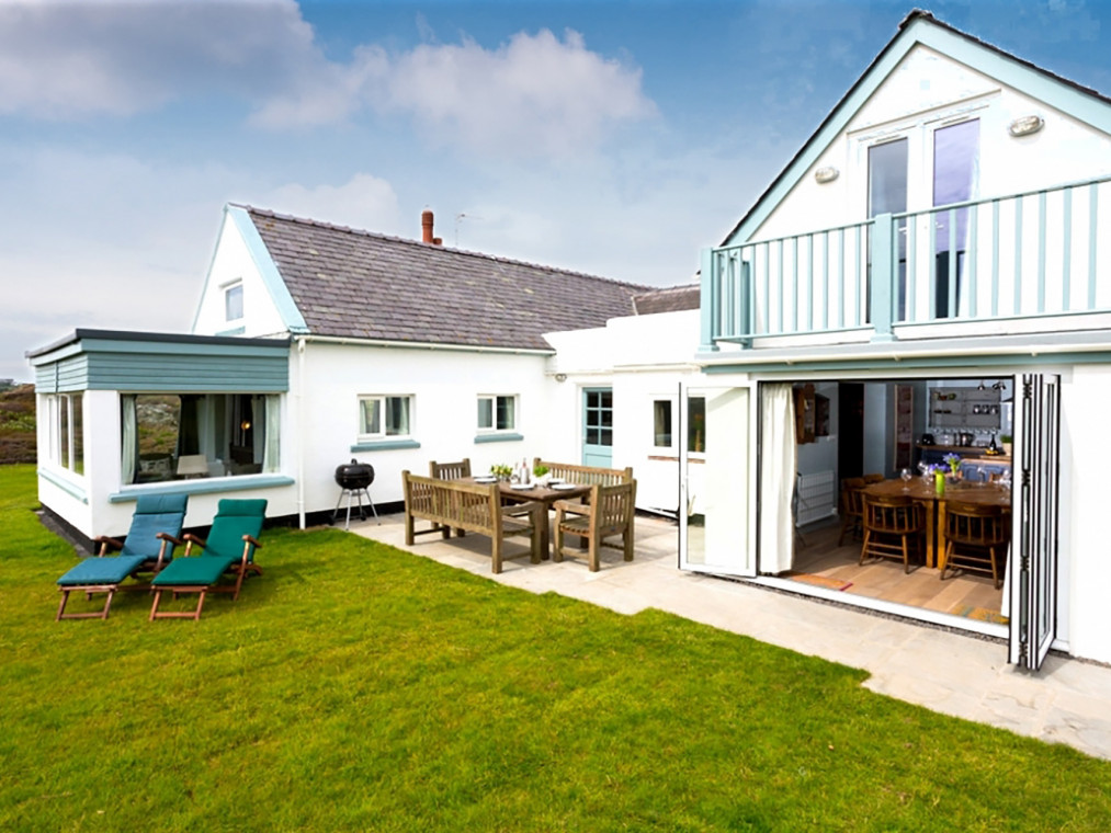 Plas Esgob is a stunning holiday house with its own little beach and the most breathtaking views. It is located near Rhoscolyn on the west coast of Anglesey. The owner has carefully added his flair and love to the original character of this charming seaside holiday house with vintage throws and fascinating nautical finds. This is a house where you can enjoy a seaside holiday as it should be - simple pleasures in great company. *ALERT* - This fantastic house is about to get even better! From May 2020 the property will benefit from a large extension and renovations completed in a similar style and to the current impeccable taste of the owners. A fresh entrance hall will welcome you into the house. The old kitchen space to the left of the house, will be home to two bedrooms; one twin bedroom on the ground floor with zip'n'link small single beds which can also be made up as a king size bed. Adjacent is a king size room with its own private patio doors. A new shower room with loo and hand basin will service these ground floor bedrooms. Upstairs, there are two further double bedrooms (one super king and one king). Both bedrooms have gorgeous views and will benefit from private balconies. Both rooms will continue to have their own bathrooms with roll-top baths. There is to be a new extension which will house a new open planned kitchen diner on the ground floor with a mezzanine sitting room all benefitting from double height glazing which will maximise the stunning sea views. We will provide plans as soon as possible and please note that there may be small adjustments to the design once in the build is in progress. Current layout: The kitchen and dining area is a large sociable space with French doors opening out onto the sheltered patio area and garden. This well equipped kitchen has free-standing hand painted units, a range cooker, dishwasher and a fabulous bright red American-style fridge freezer. The large dining table seats eight. The view from the kitchen sink will make everyone want to volunteer for the washing up! Just off the kitchen is a cosy little room with a large flat screen TV and DVD player. It‘s the perfect place to tuck up after a busy day exploring the island. The sitting room and sun room is a lovely bright space. There are comfortable sofas and armchairs around the wonderful glass-topped boat coffee table, set in front of an open fire. This is a perfect room for relaxing in and reading the morning paper or curling up by the fire on cooler days. There is one twin bedroom on the ground floor with zip'n'link small single beds which can also be made up as a king size bed. Opposite this room there is a bathroom with a loo, washbasin and shower. Upstairs there are two further double bedrooms (one superking and one king). Both of the upstairs bedrooms have gorgeous views and are accessed by separate stairs. Each room also has its own vintage pair of binoculars, so you won't miss a thing! Both rooms have their own bathrooms with roll-top baths, vanity units converted from traditional chests of drawers and gallons of hot water - ready for when you all come back in from the beach at once. There is a handy tap by the back door for washing off sandy feet. From here you can head into the utility and drying room which has space for your dog to sleep, hooks and hangers for coats and wetsuits and a washing machine. The sheltered courtyard is a lovely suntrap. Furnished with a dining table and chairs, as well as two steamer chairs and BBQ - perfect for cooking your catch of the day! The garden is enclosed. You can walk along the sand to the local pub, The White Eagle, buy crab and lobster from the local fisherman, explore the coastal footpath, or book a kayaking or coasteering session with B-Active. Alternatively you can enjoy a climbing and mountain adventure which can be provided by Gaia Adventures. Be as busy as you want to be, all without getting in your car. The nature of Plas Esgob's location means that there are areas of cliff face and the sea within close proximity to the cottage. Whilst the garden is enclosed, guests with young children are asked to be mindful of this. The beds will be made made up as advertised, if you would like a different bed configuration please contact Menai Holidays 7 days before your arrival. Three bedrooms: 1 x super king en-suite, 1 x king en-suite, 1 x twin (zip/link option can be made as king on request) Ground floor bathroom with shower, WC and basin, Both ensuites have bath, WC and basin Kitchen with dining table, Sitting room with wood burning stove, Snug room. *As of May 2020 : Four bedrooms: 1 x super king en-suite, 1 x king en-suite, 1 x GF twin (zip/link option can be made as king on request), 1x GF king. Ground floor shower room with WC and basin, Both en-suites have a bath, WC and basin. Kitchen with dining table, mezzanine seating area, Sitting room with wood burning stove. Amenities for Rental Electric heating, with wood burning stove Range cooker, dishwasher, fridge freezer, washing machine, microwave TV, DVD player, WiFi One dog welcome Travel cot (no linen), high chair Bed linen and towels provided Off road parking Court yard with outdoor furniture and BBQ and enclosed garden Pubs, shops and restaurants 2 miles NOTE Due to location of the cottage it is in close proximity to the sea and cliff face, whilst the garden is enclosed please always keep an eye on young children.