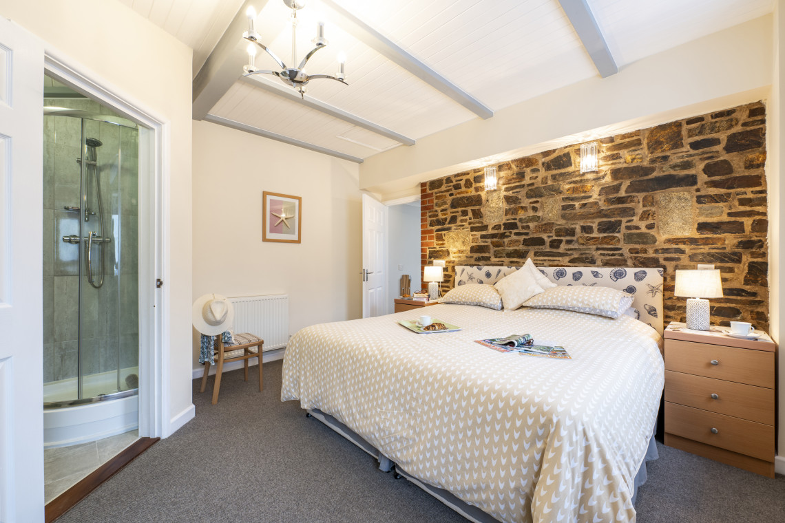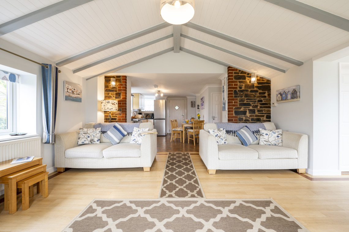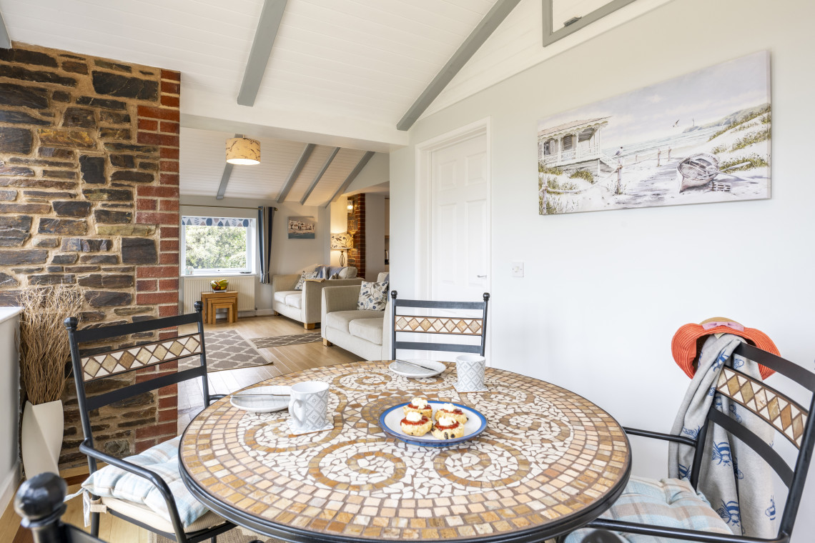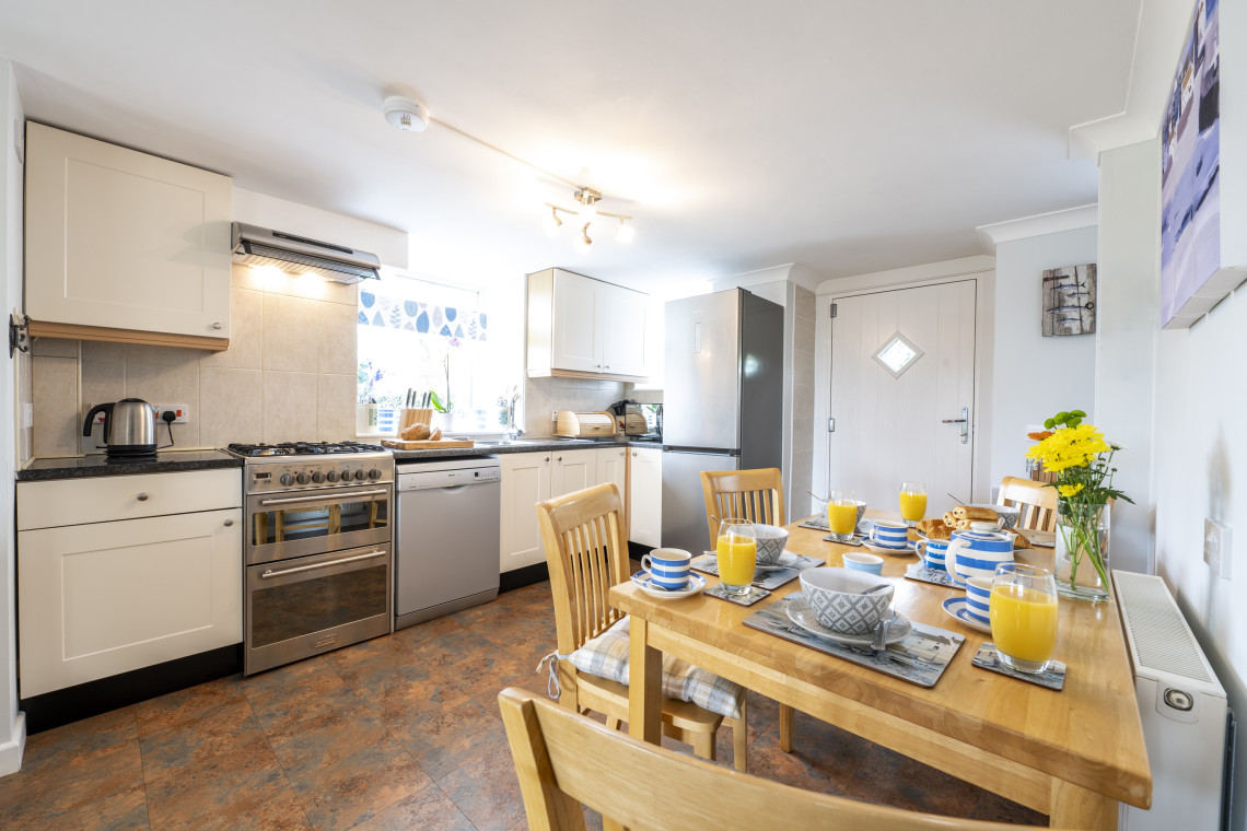 This warm and welcoming cottage has two good sized en-suite double bedrooms (one on the ground floor), with king-size beds that can be split into two singles. There is a walk-in shower in the downstairs bedroom, and a bath with shower upstairs. The large kitchen/diner has a fridge freezer, dishwasher and microwave; the sitting room has a 55” HD TV with Netflix, blu-ray player and X-Box 360; and the utility room has a washing machine and tumble dryer. Superfast wi-fi is provided. Throws are provided for both electric reclining sofas. To the rear, there is a patio area and enclosed lawned garden which overlooks the adjacent fields and Engine House with views down to St Austell Bay. The garden bench offers a magnificent sea view.