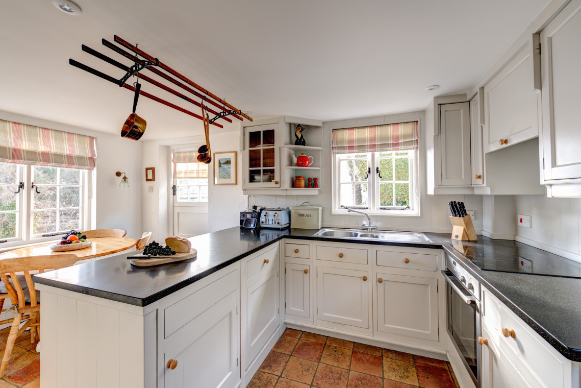 Named after two sisters, Poppy and Gayle, this sweet fisherman’s cottage has lovely river views from the kitchen, patio and bedrooms.