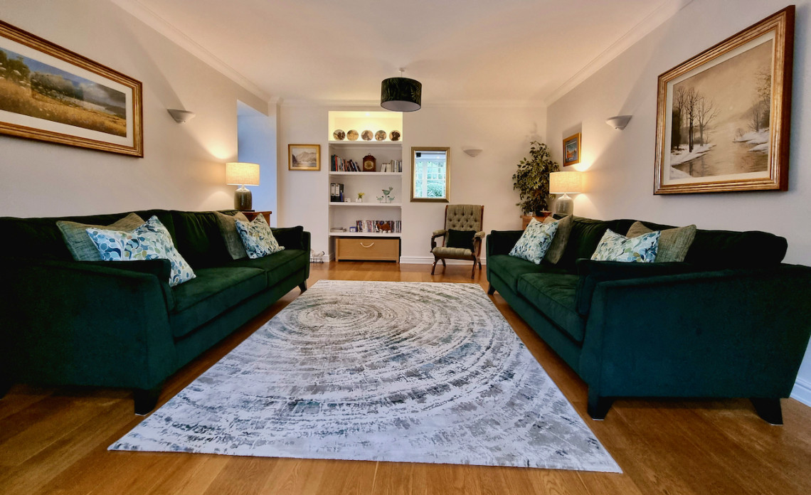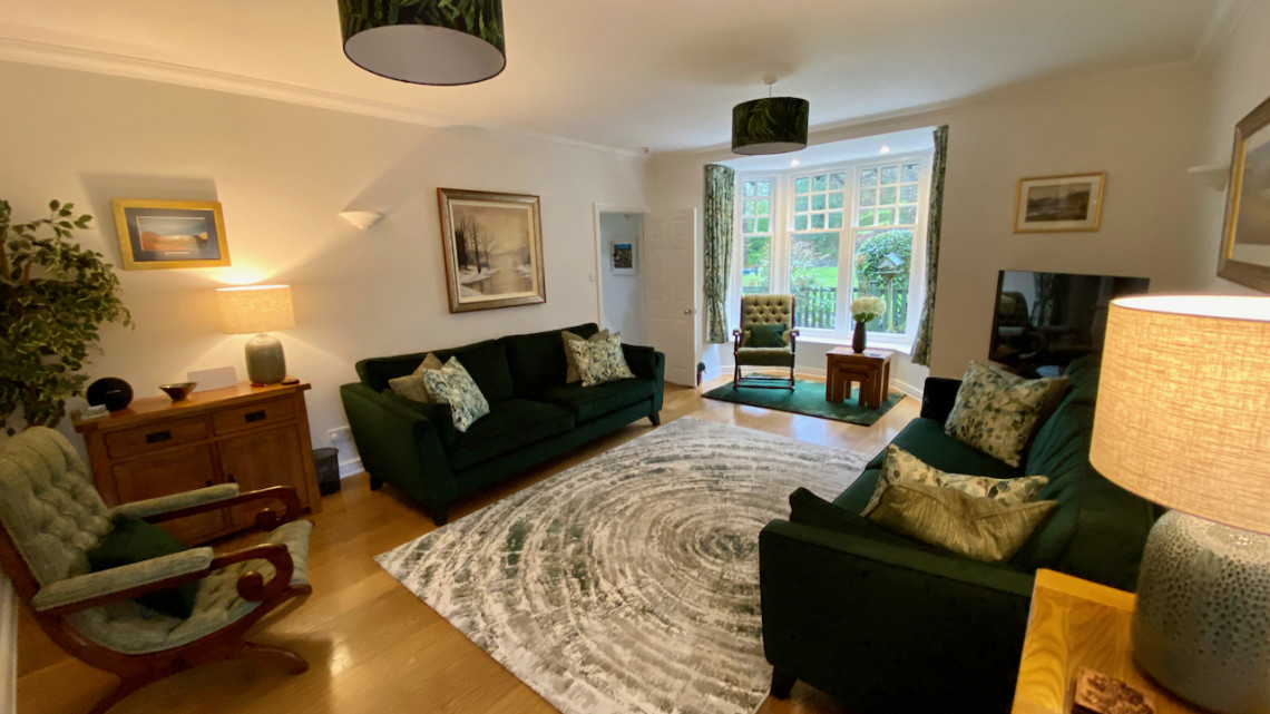 The bright and spacious lounge has a large bay window overlooking the garden. From here you can watch the kids playing safely or simply observe the huge variety of wildlife that resides around the cottage.