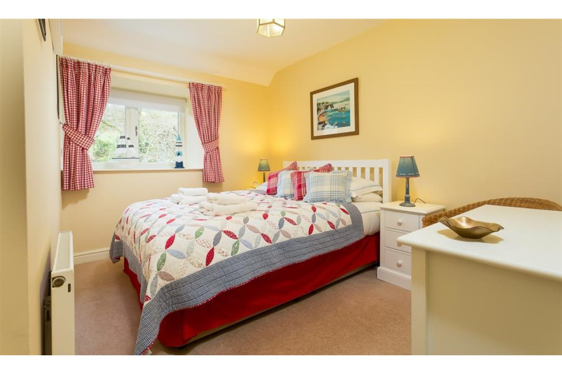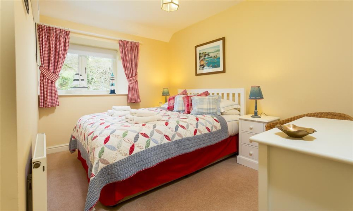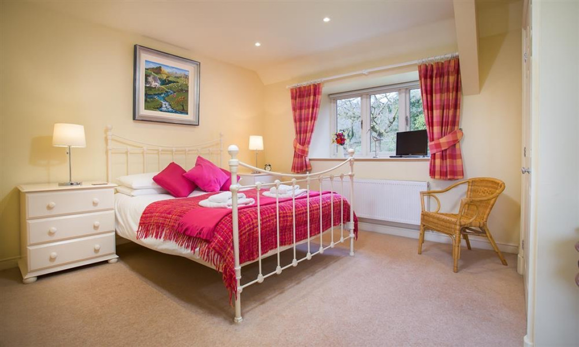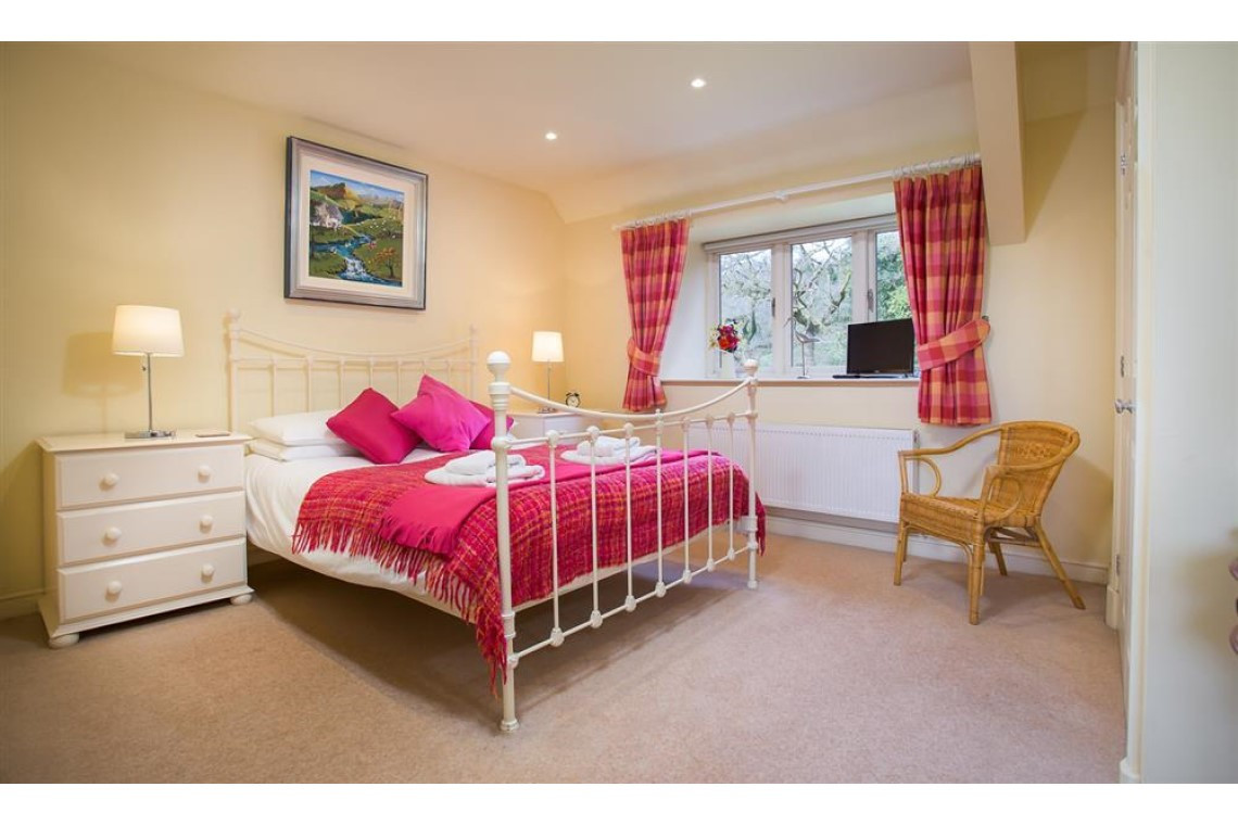 Each of the three bedrooms at Pudding Cottage has its own welcoming style with close attention to detail. The king bedded master en-suite bedroom is in warm pinks and oranges plus a TV.