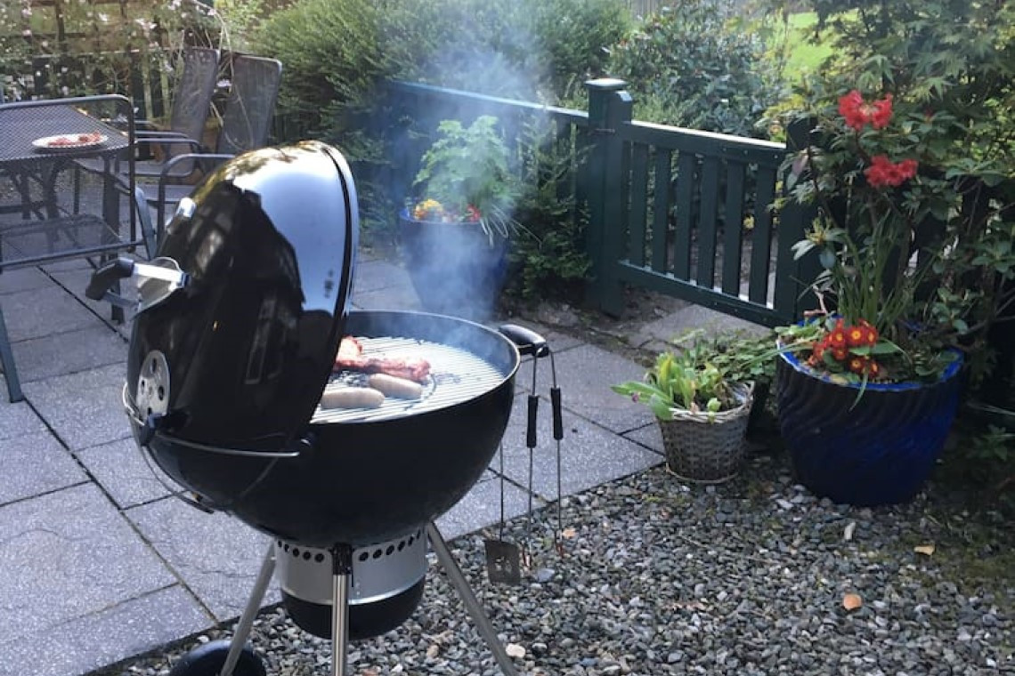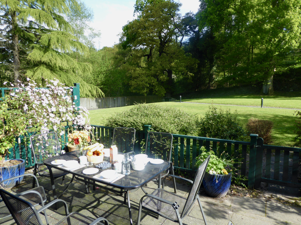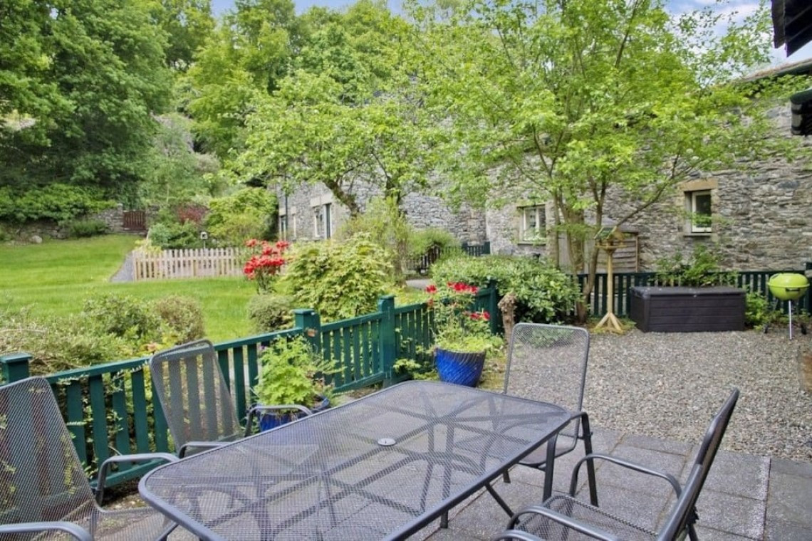 Outside, Pudding Cottage has a largely enclosed communal garden . The cottage also has a large private patio terrace and BBQ, with outdoor dining table and chairs where parents can keep an eye on the kids at play while relaxing with a glass of wine.