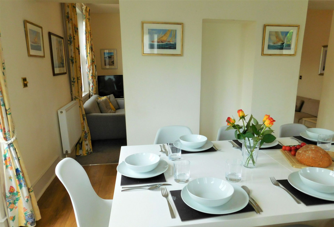 Quay Corner is ideally situated in the centre of popular Christchurch, the perfect location for a large family gathering offering five bedrooms over three floors and off street parking for four cars. Quay Corner is a three storey, Grade II listed townhouse ideally situated in the historic centre of Christchurch, just a minute's walk from the town centre and next to the famous Priory. This comfortable house is the perfect location for a large family or gathering and an ideal base from which to explore Christchurch and the harbour, Mudeford, Bournemouth, and the New Forest, and with all the facilities you could wish within a very short walk. Quay Corner can accommodate up to ten guests with off street parking for up to four cars. Accommodation comprises of a separate sitting room, dining room with patio doors leading to the rear garden and a well equipped kitchen on the ground floor. The bedrooms and bathrooms are on the first and second floors. For larger groups of 25 guests, the adjoining Quay House may be combined and booked as The Quays, subject to availability.