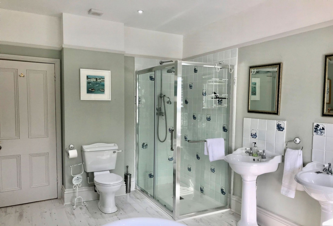 Quay House has an extensive kitchen which is well-equipped and dining room which can seat 15 around a single table. The sitting room with comfortable sofas and television with Virgin Media package. There is a double bedroom on the ground floor with jack and jill en-suite shower room that leads to the entrance hall. On the first floor there is the master bedroom with a super king size four poster bed and en-suite shower room. A second bedroom with king size bed and the third bedroom is a twin room with two 3' single beds. On the second floor there two further bedrooms, a family bedroom with a king size bed and two 3' single beds with en-suite bathroom with shower over the bath, and a twin room with two 3' singles. Outside to the rear of the property is an large enclosed garden with lawned area and patio with garden furniture. To the side of Quay House there is parking for up to four cars in the car park.