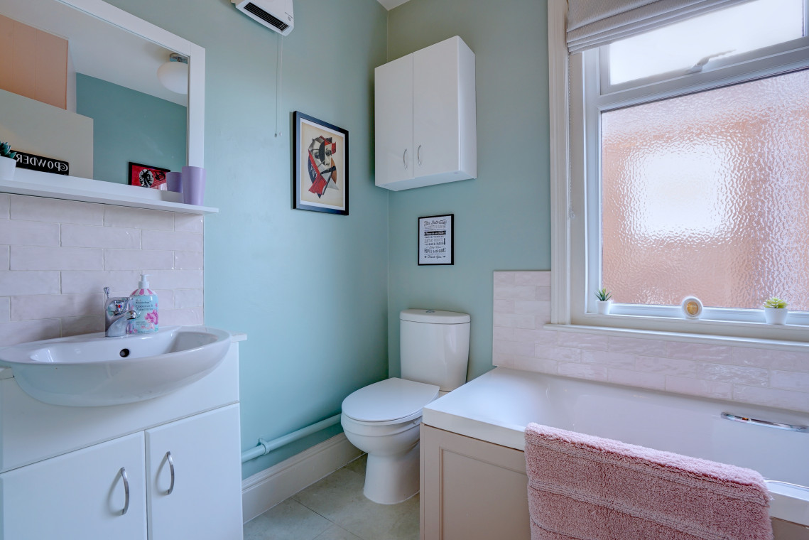 2 bathrooms: Family bathroom upstairs and shower room downstairs.