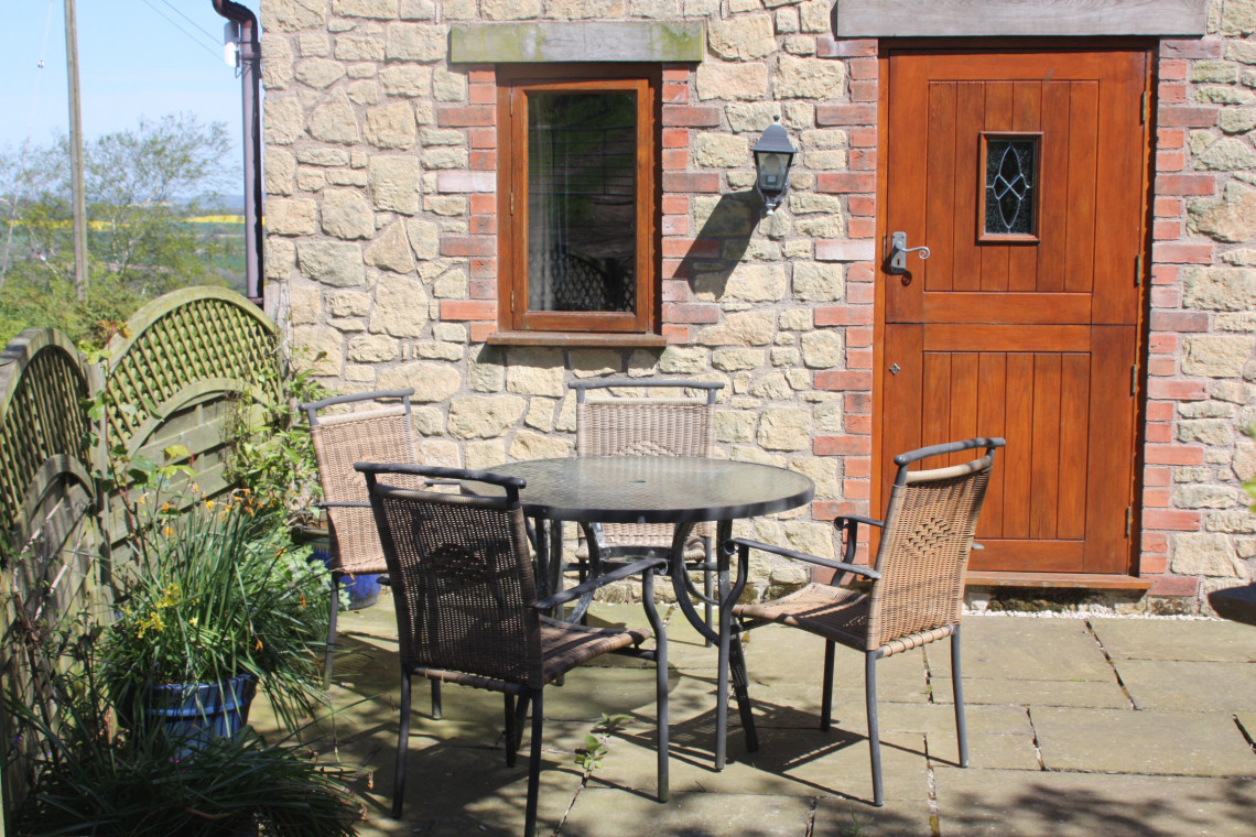 The private terrace facing Caer Caradoc catches the sun through much of the day and into the evening and is enclosed so is handy for guests' dogs, or other pets.