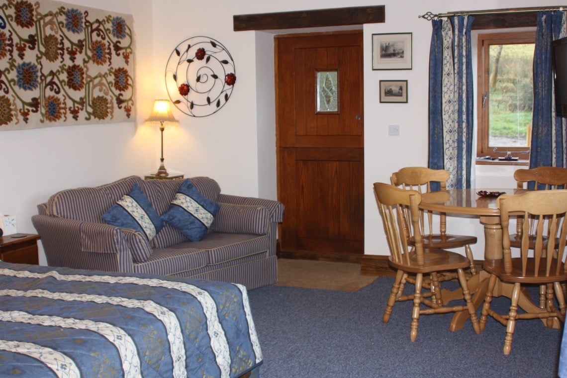 The cottage has a king size bed and a sofa bed so can also be used for families. The dining table seats four.
