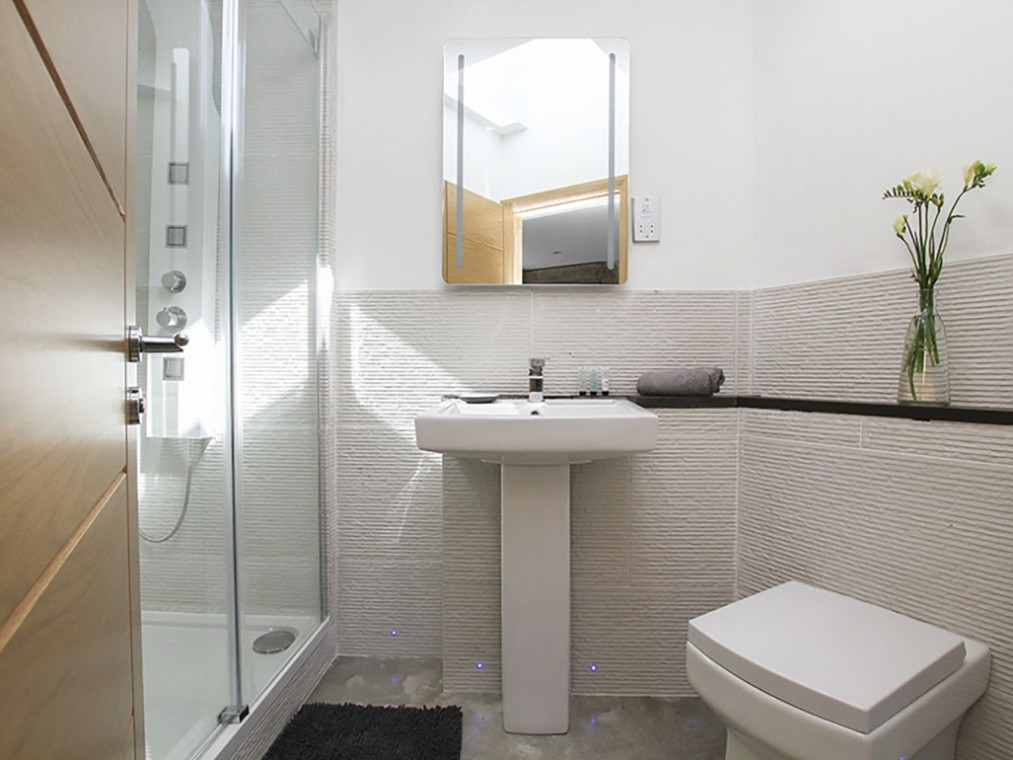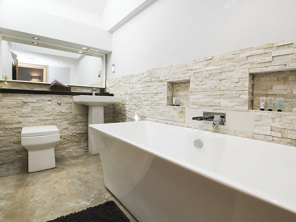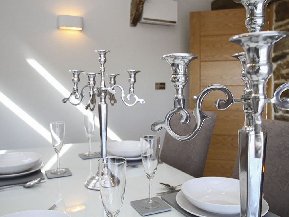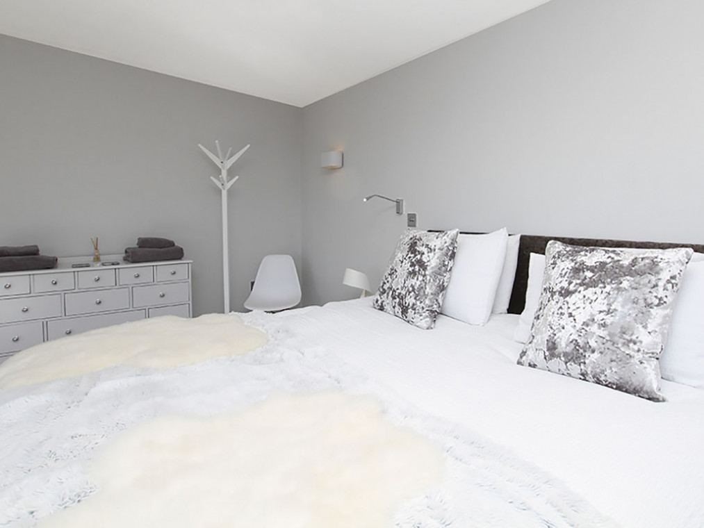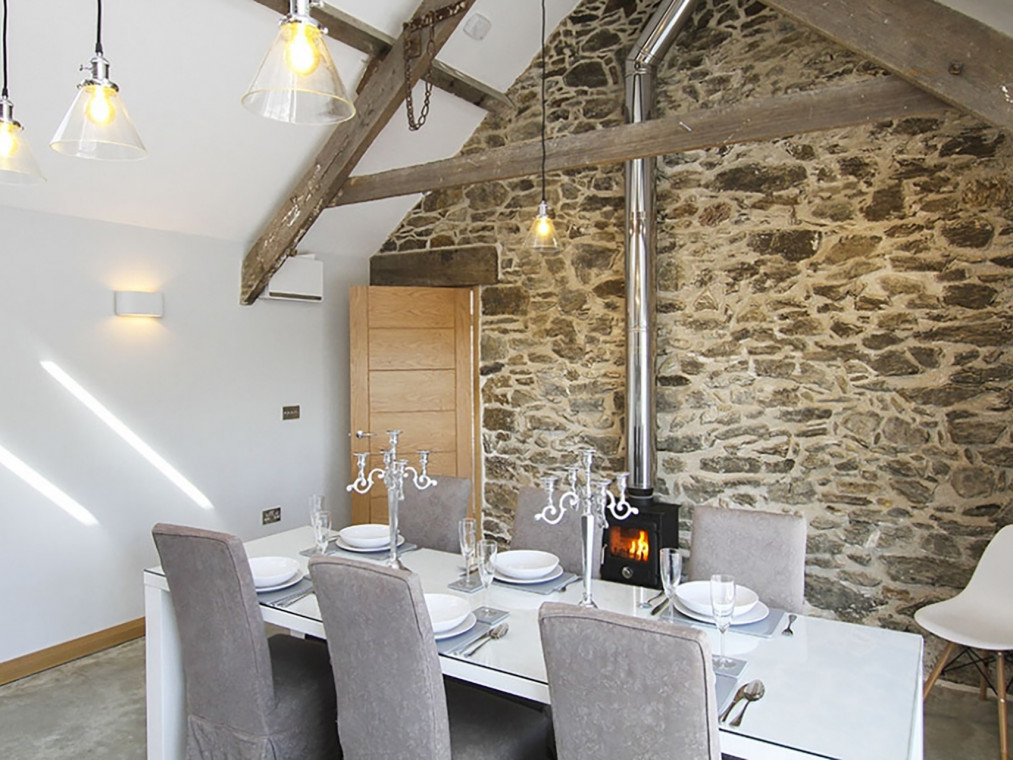 This stunning luxury barn conversion near Church Bay on Anglesey is full of simple luxurious touches. Rhyd Angharad Barns are beautiful buildings in a fantastic elevated position giving tremendous views over Anglesey towards the mountains of Snowdonia and out over the Irish Sea. The modern kitchen has a zinc worktop and polished concrete floor, exposed beams and stonework. There is an electric cooker and hob, dishwasher, washing machine, large free standing fridge freezer, two under counter fridges, a microwave and toaster. The stylish dining area has a wood burning stove and Italian designer table and chairs. The sitting room has magnificent country and sea views from picture windows, a designer Ligne Roset Togo sofa set, bio ethanol fireplace, and TV, DVD player and SKY. There are four bedrooms. The first is a double curved room with a super-king 'floating' bed. The second bedroom has a double 'floating' bed. There are two further twin bedrooms. There is a shower room with a large snazzy shower, loo and wash hand basin. A separate bathroom has a double ended bath, loo and wash hand basin. Outside there is a large lawn with patio areas with garden furniture. There is parking for several cars. Rhyd Angharad Barns has been lovingly converted and extended with quality fittings and contemporary furnishings ranging from the designer Ligne Roset Togo sofas to the exotic 'floating' beds. It has a beautiful polished floor and underfloor heating throughout, a bioethanol fireplace and traditional wood burning stove to give that unmatchable warm glow to evenings in. The rural position is an easy walk to the Blue Flag beach at Church Bay and the Anglesey coastal footpath is also close by. The Wavecrest Cafe and The Lobster Pot are popular choices for meals out. Please note that Rhyd Angharad Barns is a ground floor property but guests should note that there is a change of level with 4 steps in the hallway. Four bedrooms: 1 x super king, 1 x double, 2 x twin. Two bathrooms: 1 x shower room with large shower, loo and basin, 1 x bathroom with double ended bath, loo and basin. Sitting room with bio ethanol fireplace. Amenities for Rental Underfloor heating, electric cooker and hob, dishwasher, large free standing fridge freezer, microwave, toaster, bed linen and towels provided, wood burning stove & bio-ethanol fireplace, flat screen TV, DVD player, Sky TV facilities, books, games & DVD's, bbq, off road parking, travel cot (no linen), high chair, washing machine Two well behaved dogs welcome Shop 3 miles and pub 1.5 miles Note: Initial supply of kindling and logs Further supplies available locally.
