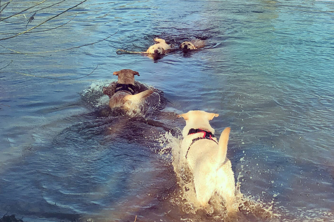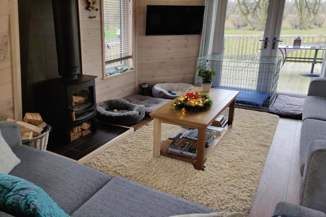 ‘Curlew’ is one of four luxurious wooden lodges at Riverdale (there are also four safari tents). The lodges have three bedrooms sleeping six in comfort. They are extremely well equipped with everything you could possibly need for a holiday including Wi-Fi, fridge and freezer, dishwasher, washing machine and nice touches such as umbrellas and fans (depending on the weather). There is a wood burning stove in Curlew Lodge with a generous supply of wood, kindling and firelighters. The loges are light and airy and warm and cosy. The lodges and tents are cleverly positioned to offer privacy. The reception block has a dog wash facility with a warm shower and shampoo which is very useful for those inevitable muddy paws. Dog treats, dog bowls, dog towels, toys and the option of dog beds are all provided. Their personalised dog treats were exceptional!