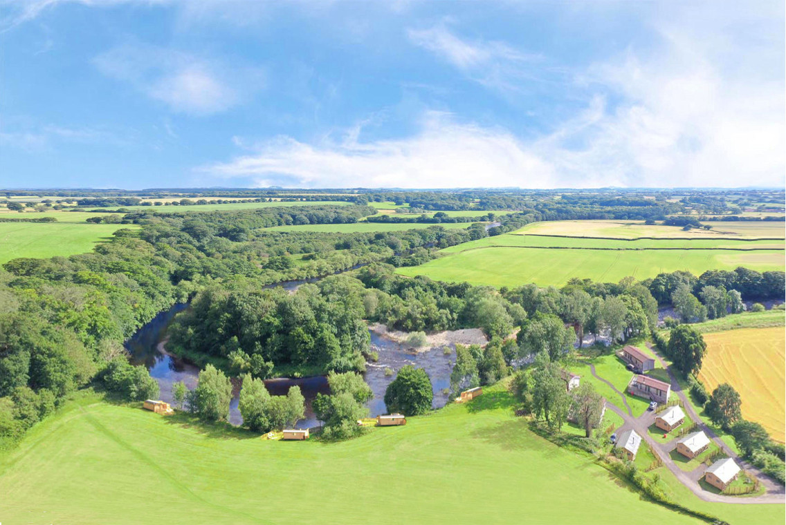 Luxury Lodges and 5* Safari Tents (just 4 of each) share more than 3 acres, and a wildflower meadow (5 acres) where our Shepherd's Huts are located. We are right at the riverbank, where you enjoy peace and tranquillity, with only the sound of the birds and the river in front of your terrace, and super off-lead walks right from your doorstep.