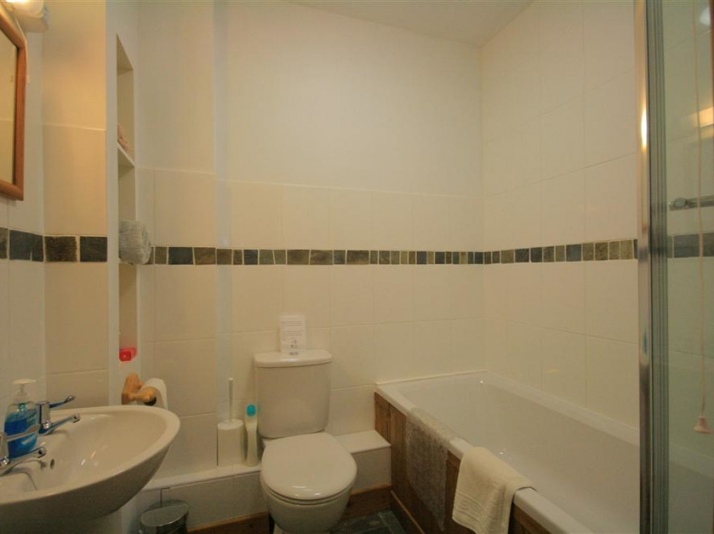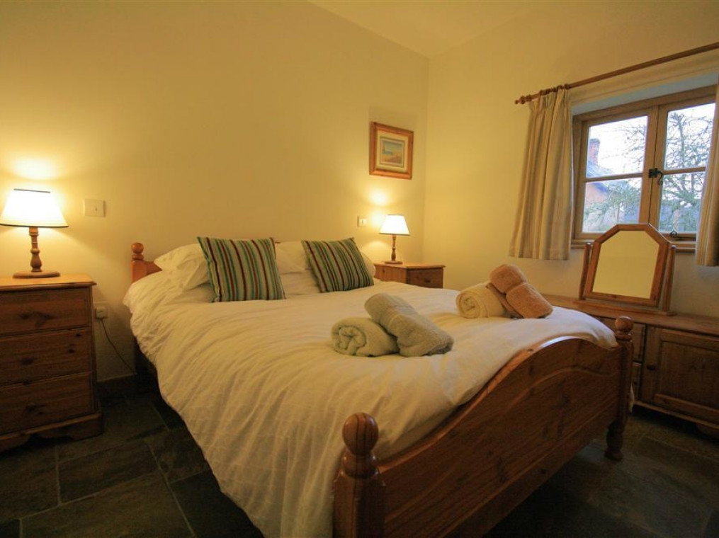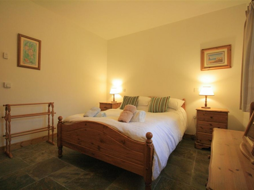 All ground floor. Two bedrooms: 1 x double, 1 x twin. Bathroom with bath, shower over, basin and WC. Kitchen with dining area. Sitting room with wood burning stove.