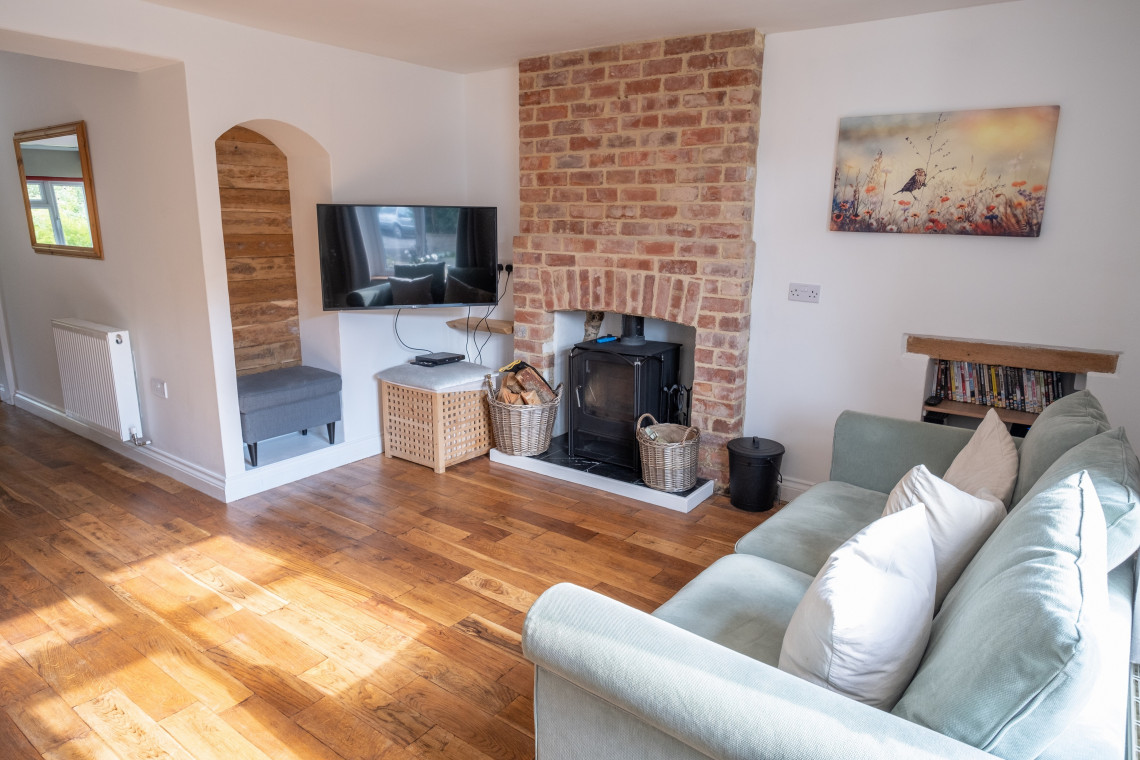 Cosy lounge with comfy sofas, Smart TV, DVD player and log burner