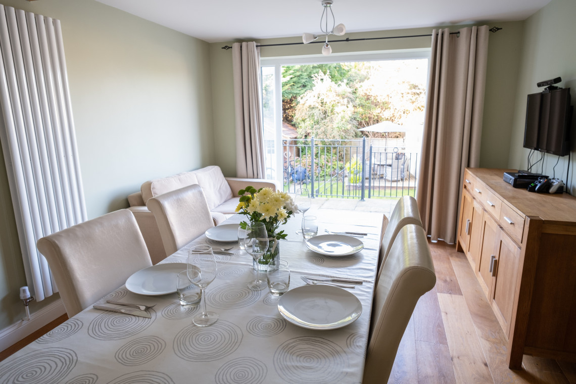 Separate seating area in the dining room with a Smart TV and games console, and a selection of games