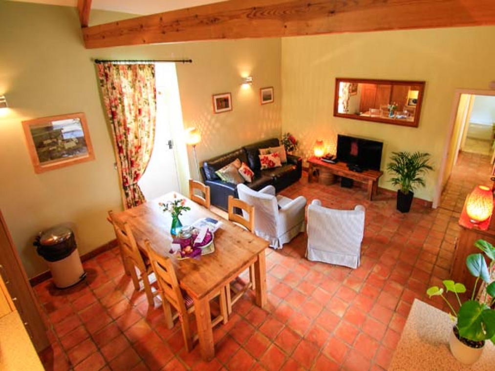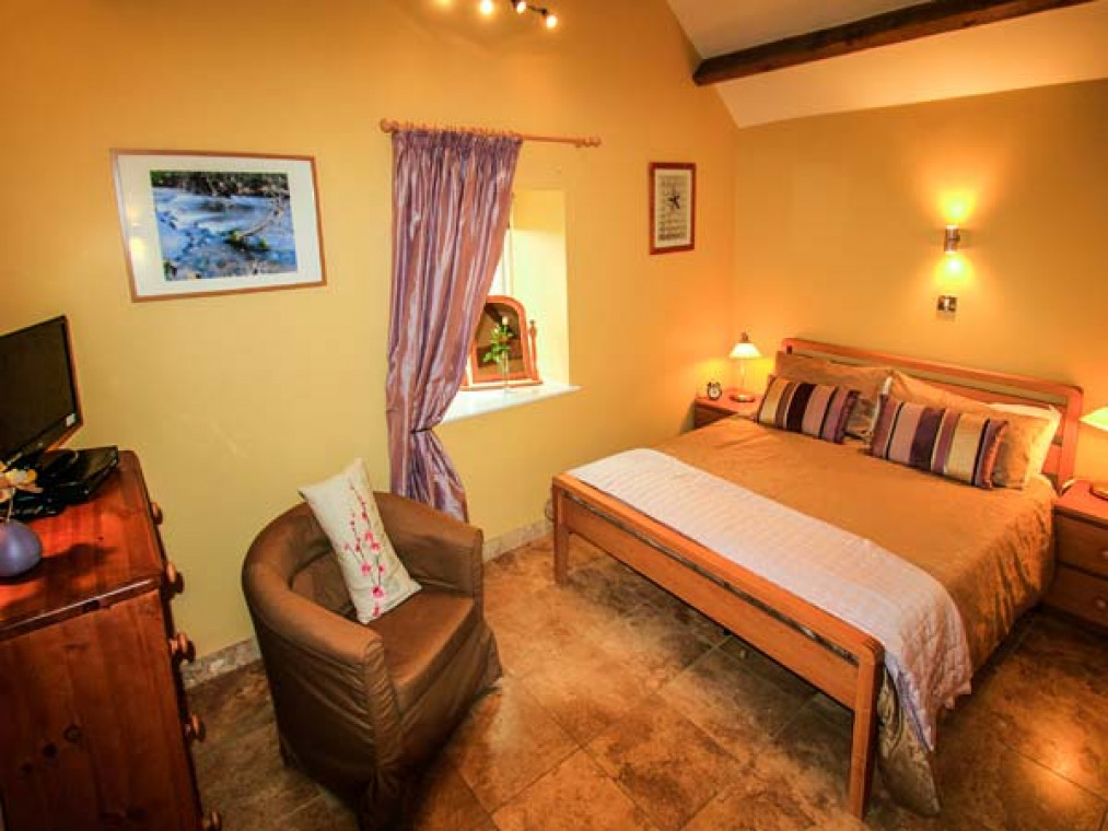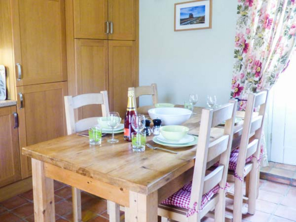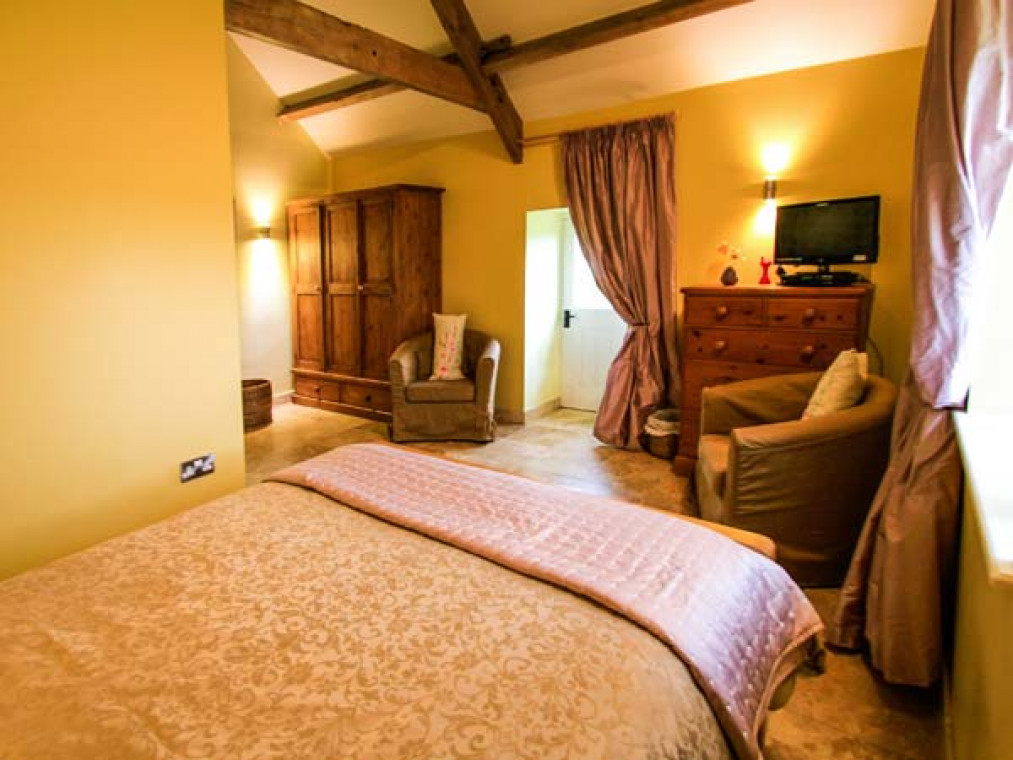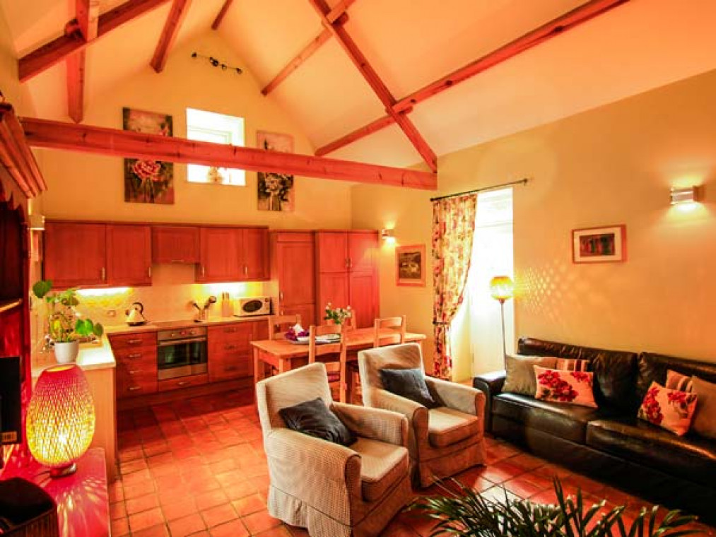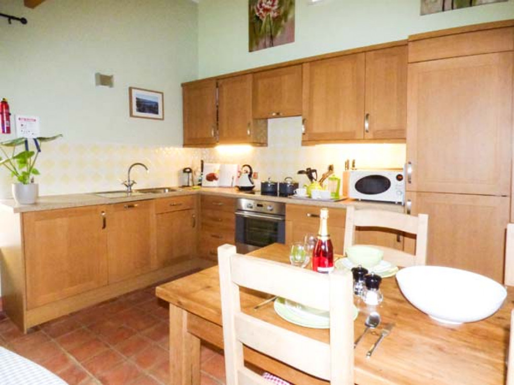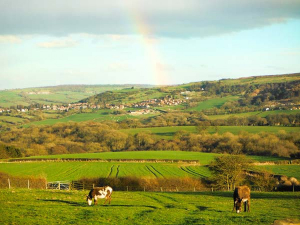 Aislaby 1.5 miles. A superb, detached, single-storey stone barn conversion, situated on the owner's smallholding in a wonderful rural location, just five miles from Whitby. Surrounded by stunning countryside, this warm and inviting Aislaby cottage is a real delight, with high pitched beamed ceilings, terracotta floors and fitted kitchen with oak doors. Furnished and decorated to a high standard in a homely, traditional style, this cottage near Whitby has eco underfloor heating from a carbon neutral biomass boiler system, partly powered by a wind turbine, and comprises a spacious open plan living area, charming king-size bedroom, with comfy seating and patio door, and a second twin bedroom. Outside this cottage near Aislaby is a patio, and to the front, the gravelled fold yard garden provides the perfect spot for alfresco dining, whilst areas around the farm enjoy the beautiful views, magnificent sunsets and sometimes rainbows over the Esk Valley. This Aislaby holiday home is ideal for a family wanting to get away from it all. Walking and cycling routes are nearby, and within a fifteen minute drive is the bustling, seaside town of Whitby and Sandsend Beach. Go on an evening ghost walk or amble around the quaint cobbled streets and ancient harbour. With the wonderful moors and dramatic coastline to explore, market towns such as Pickering, Malton and Helmsley close by and a wealth of activities in the vicinity, this Aislaby cottage pleases everyone. Note: This cottage is next to Ref. 911816, together they sleep 6. All ground floor. Two bedrooms: 1 x king-size double with comfy seating (down 3 steps), 1 x twin. Bathroom with bath, shower over, basin and WC. Open plan living area with kitchen, dining area and sitting area. Amenities for Rental Biomass underfloor heating Electric oven and hob, microwave, fridge/freezer, washing machine, dishwasher, TV with FreeSat, DVD, Bluetooth iPod speaker dock, selection of books and DVDs Fuel and power inc. in rent Bed linen and towels inc. in rent Travel cot and highchair on request Ample off road parking Bike storage Patio, lawned and gravelled areas with furniture One well-behaved dog welcome Sorry, no smoking Shop 3 miles, pub 1.5 miles Beach 4.5 miles Note: Access is by 5 steps up.