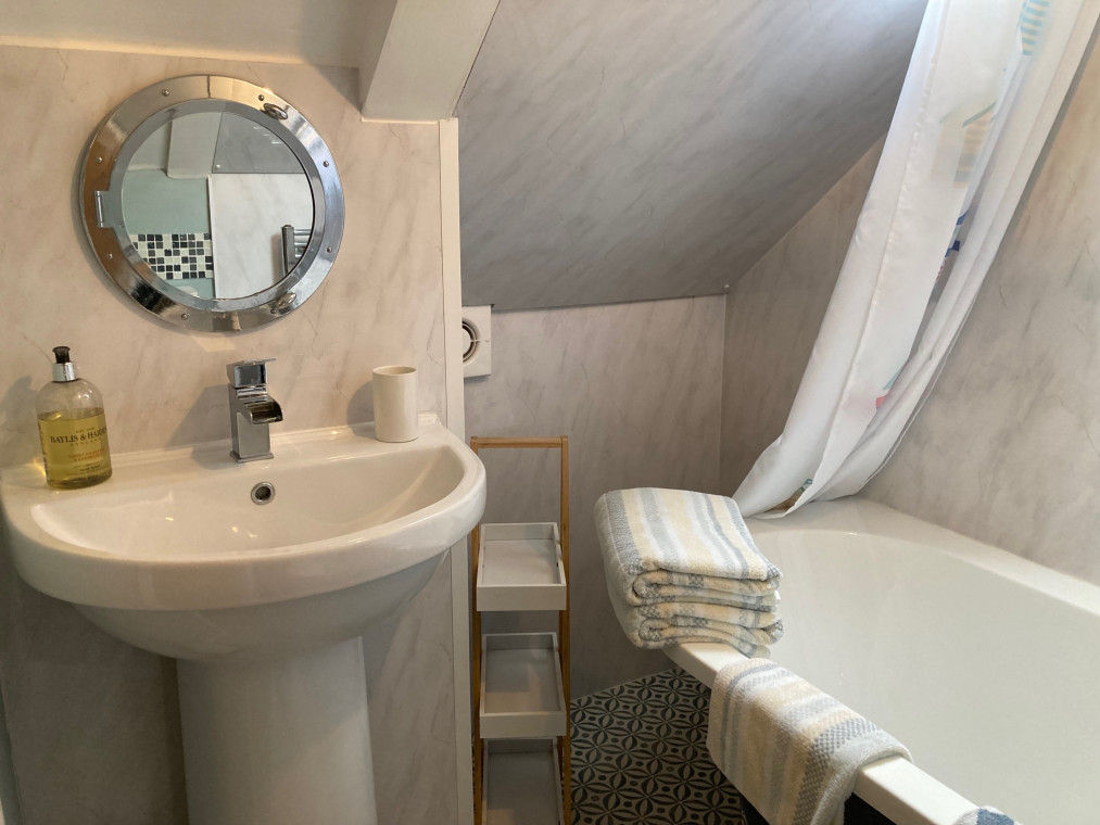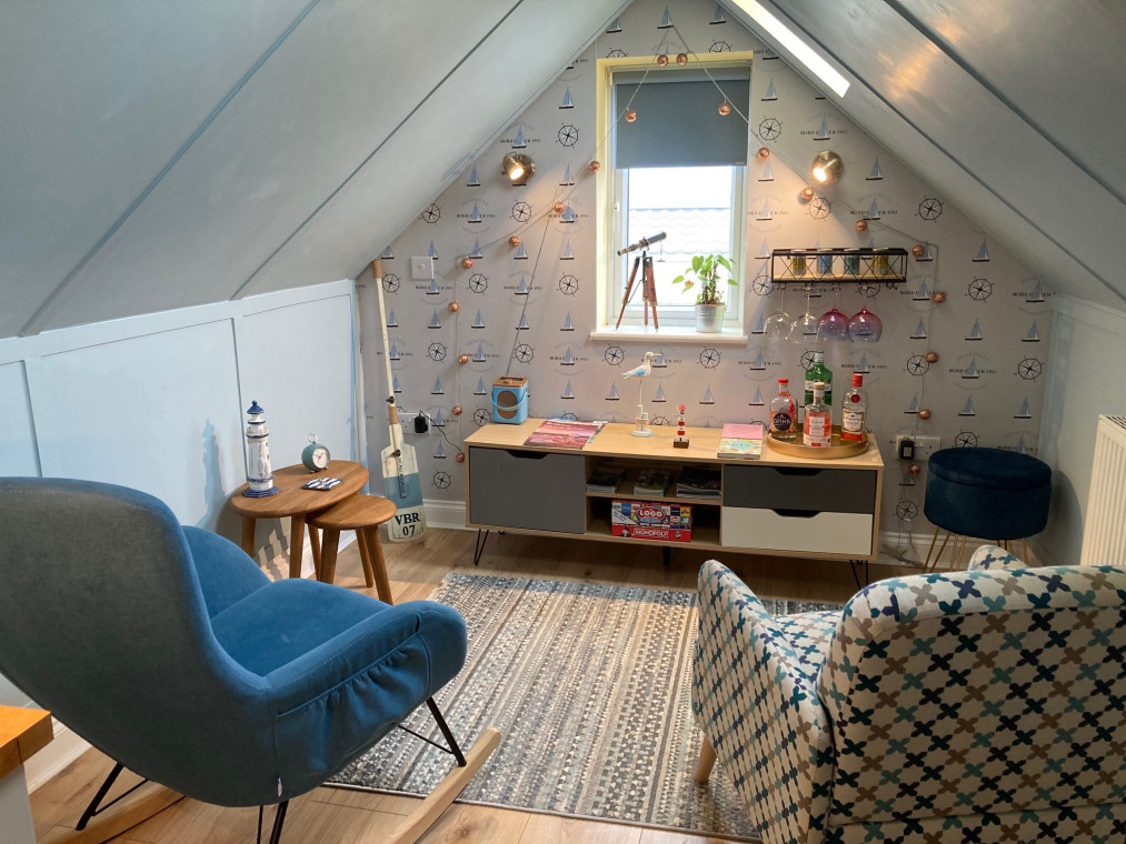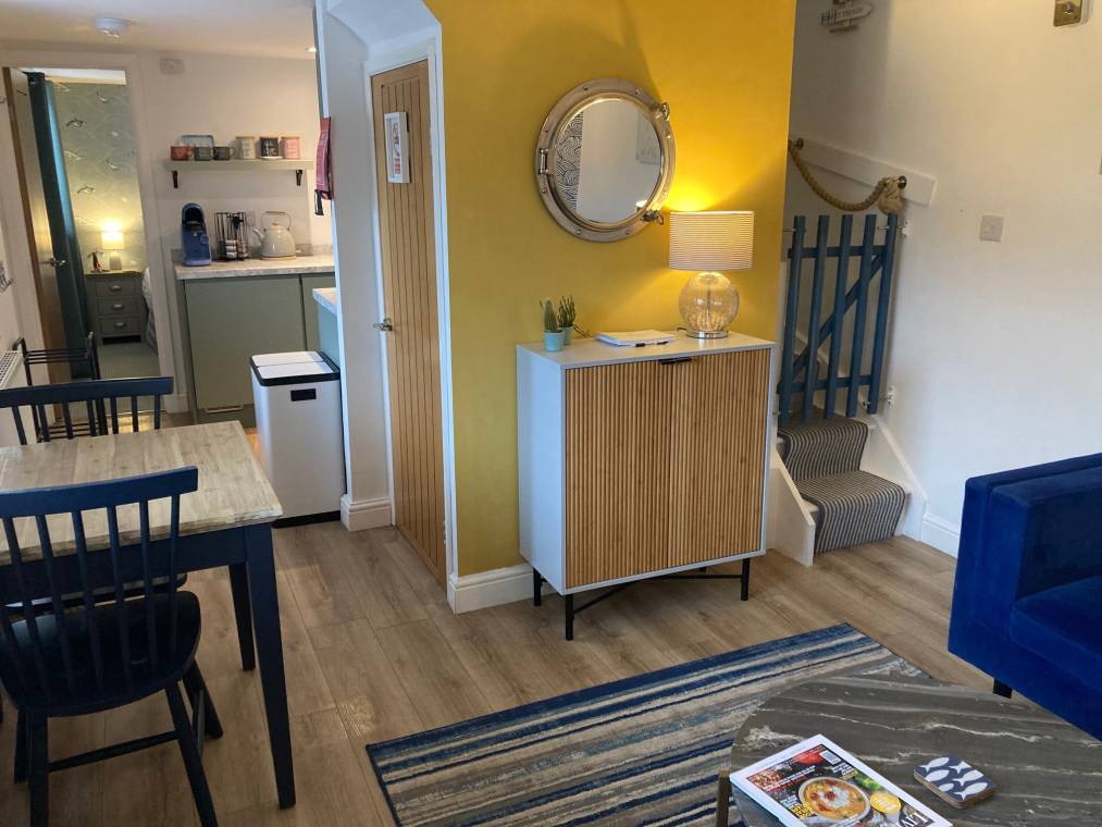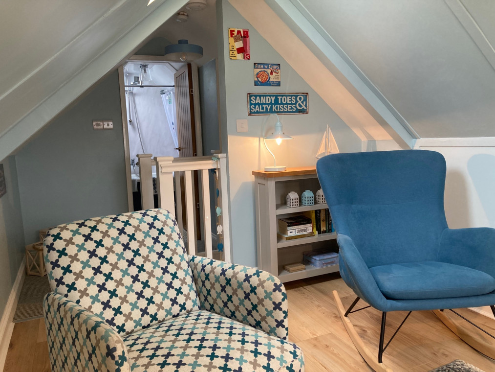 As well as a stylish kitchen, gorgeous living room and beautiful bedroom downstairs, there’s The Crow’s Nest snug upstairs which is a wonderfully quirky space to relax and do whatever you want to – maybe enjoying a well-earned drink from the complimentary gin bar, perusing the night sky with the telescope or looking out over the sea views.