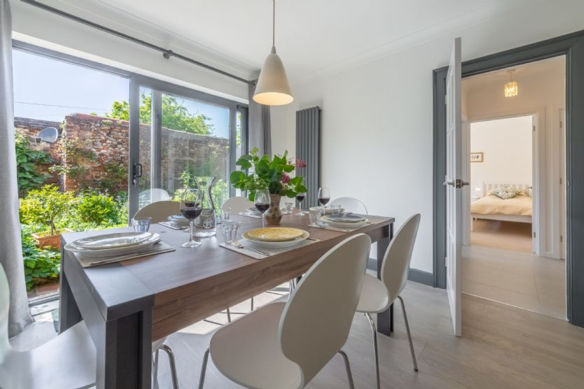 Samphire Cottage is a comfortable detached property situated in a quiet cul-de-sac in the centre of town. Decorated in a contemporary and relaxed style, the cottage has a twin bedroom and wet room on the ground floor, with two further bedrooms (king-size and double) and a bathroom on the first floor, making it an ideal spot for multi-generational families, as well as couples and friends. The well-equipped breakfast kitchen is open to the hallway and the bright, dual aspect sitting room has a dining area where doors open to the pretty walled west-facing cottage garden. The cottage has gardens to both the front and rear and the rear garden is fully enclosed. Well-behaved dogs are welcome to stay at Samphire Cottage, but are asked to abide by house rules.