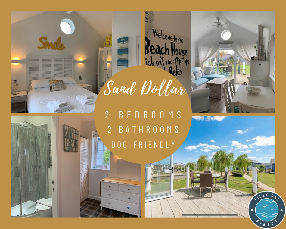 Sand Dollar Beach House is situated on Blue Anchor Road, close to the beach, tennis court, playground and village centre. Perfect for a quiet break away from it all, with a deck and boules court to the front and parking bay for 2 cars at the rear. Enter through the side door into the hallway with coat storage. To your left are the master bedroom with kingsize bed and new ensuite shower room, and the second bedroom with bunk beds ideal for children. There is also another new shower room with jack-and-jill doors. To the right is the open-plan kitchen / dining / lounge space with new sofa and armchair, with bifold doors to the deck with outdoor seating for 4, ideal for alfresco dining or sitting out whilst the children play outside on the boules court. We leave a few games for our guests to use. There is a smart TV in the living room and further TVs in both bedrooms. The log burner makes this beach house warm and cosy for breaks all year round. Parking for 2 cars side by side behind the house too. Please note the driveway/path sleepers can be uneven and slippery when wet and therefore this property may not be suitable for guests with mobility issues. The front deck has a low wire fence ideal for containing small dogs. 2 small dogs are welcome at Sand Dollar.