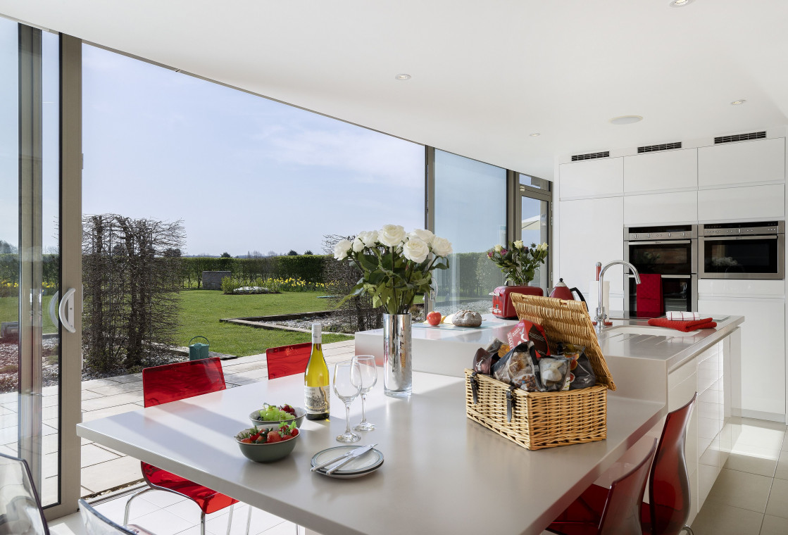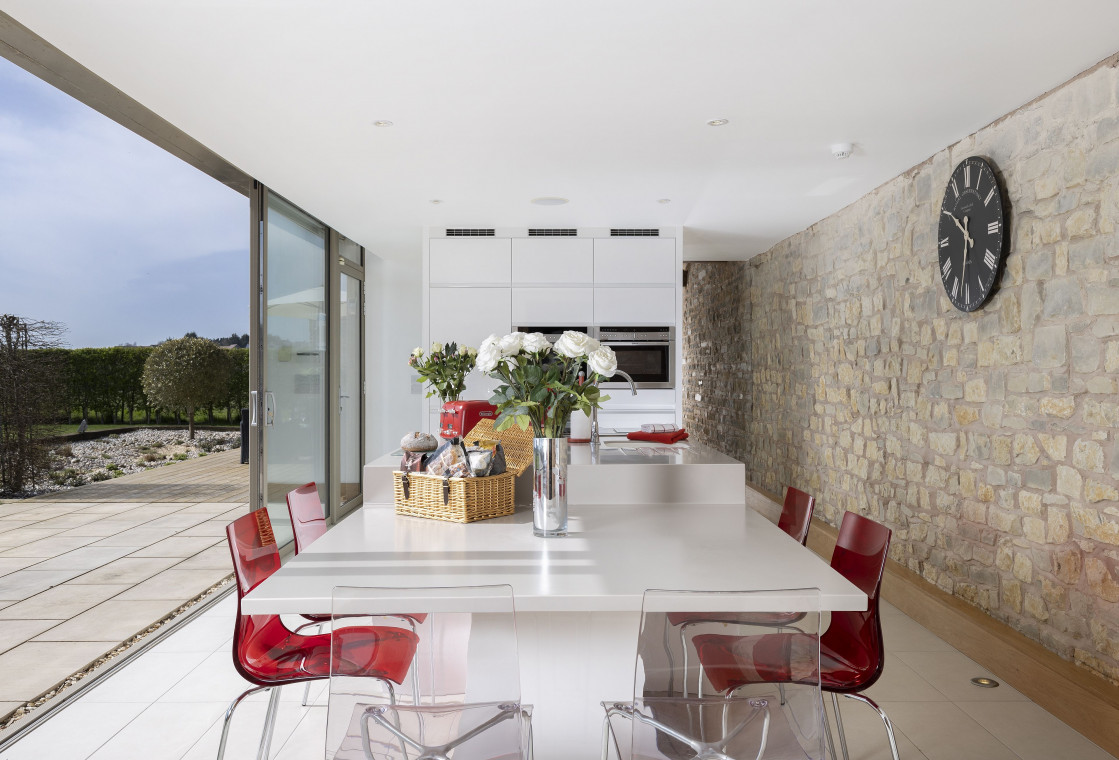 The buildings were renovated in 2014 and the site is accessible through electric gates at the entrance. The gardens are perfectly landscaped to cover almost an acre of land and also boasts an original well. The clever use of floor to ceiling bespoke windows lets the light flood into the property and offers stunning views across the countryside. Both bedrooms have air conditioning and bi-fold doors onto the decked area.