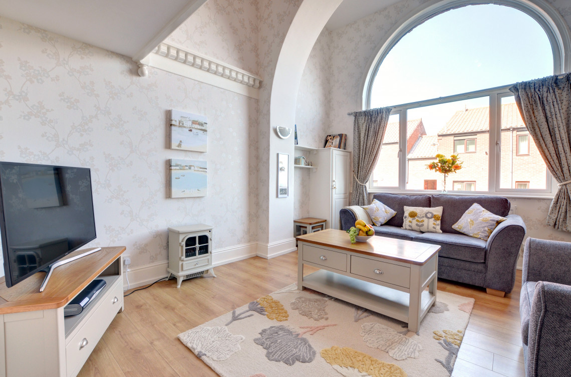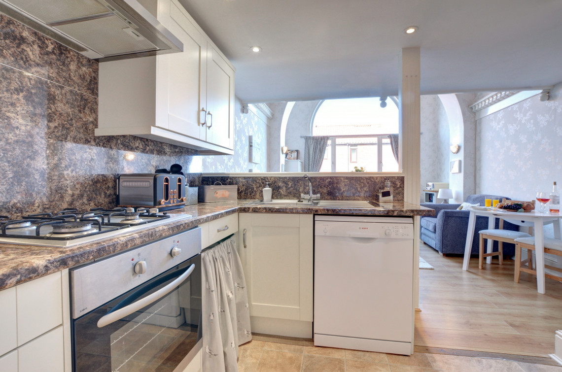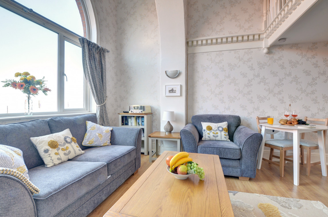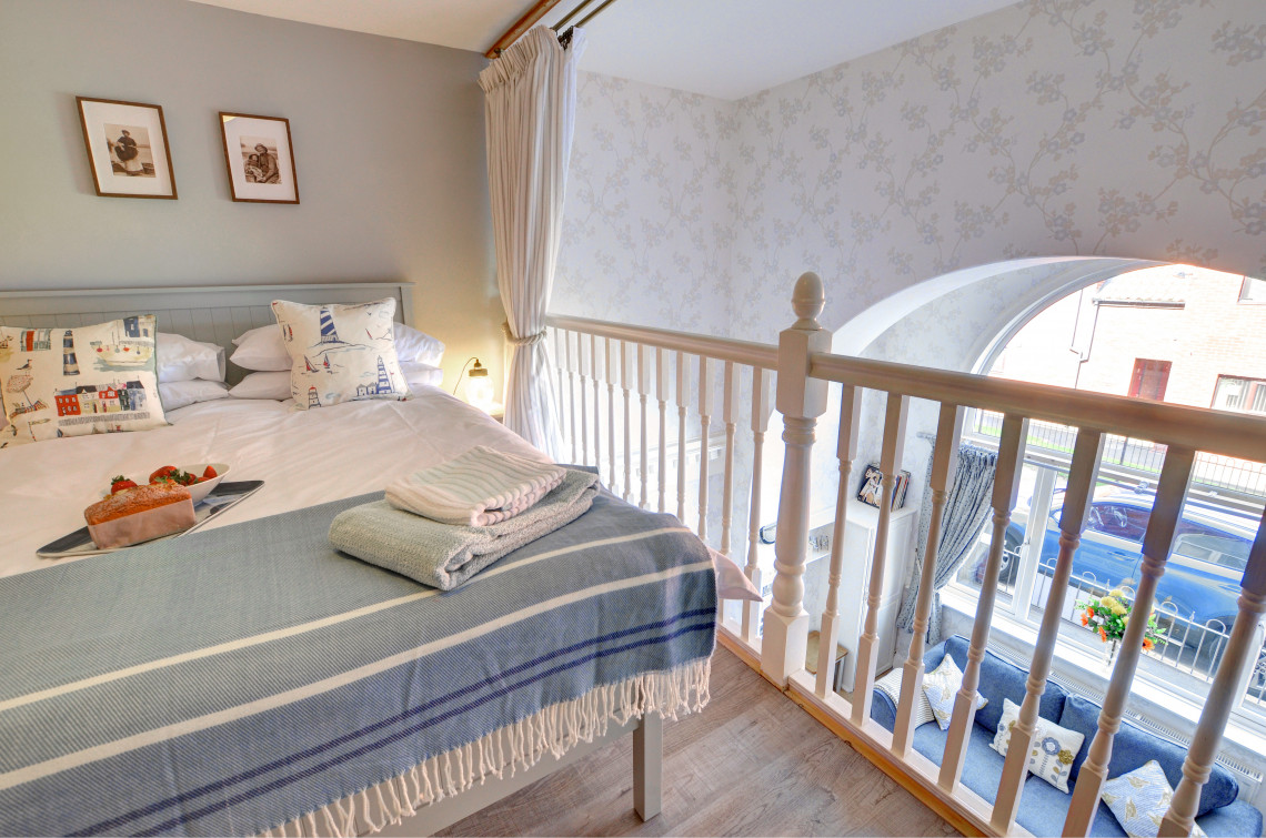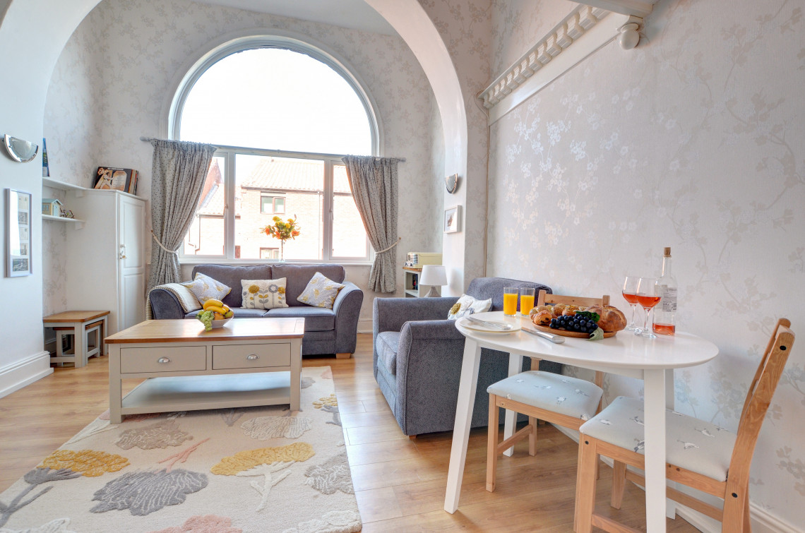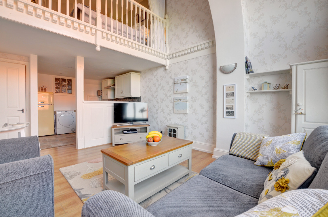 Located on Whitby’s west cliff and boasting stunning sea views from both the living room and the apartment’s beautiful mezzanine bedroom. Easy access down to the beach and a just short walk to the town centre this is the ideal location, and dogs are welcome at the property too.