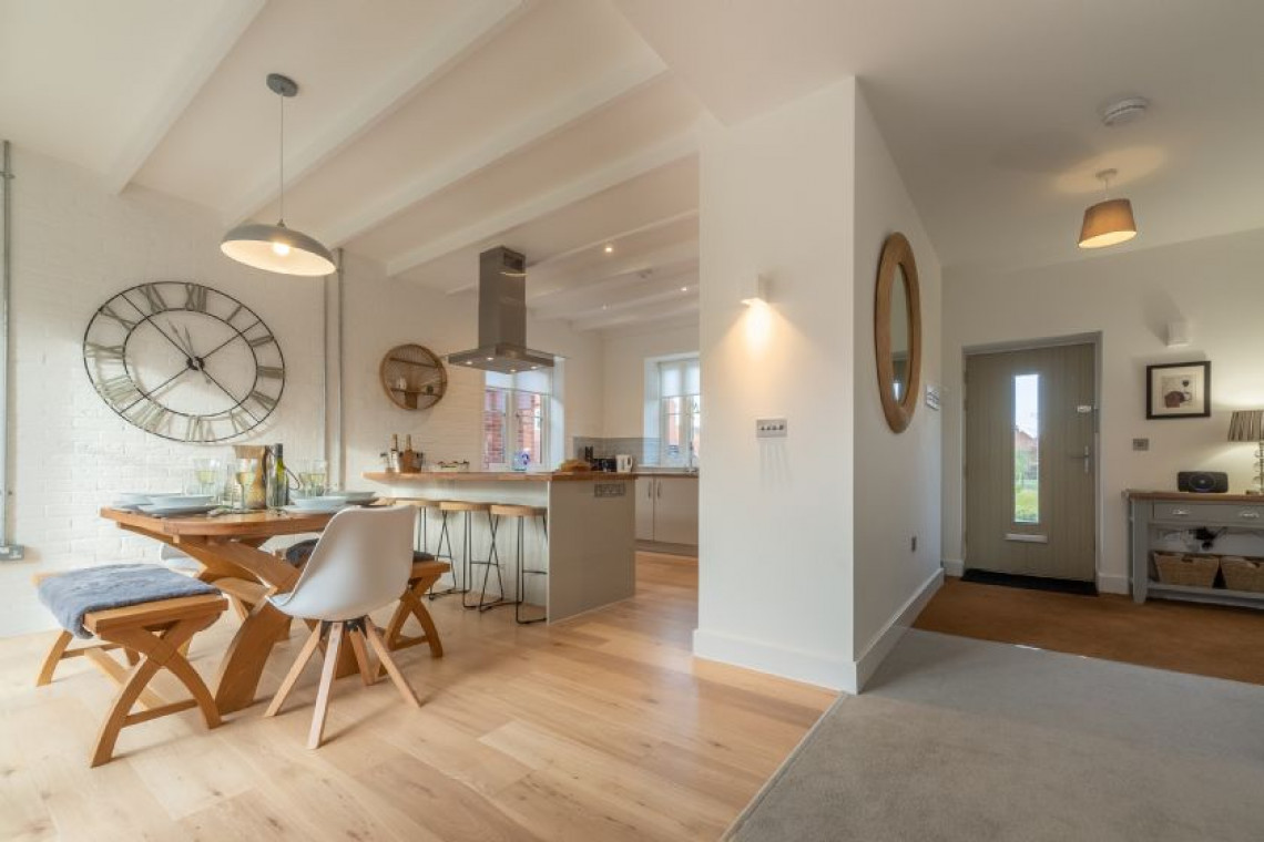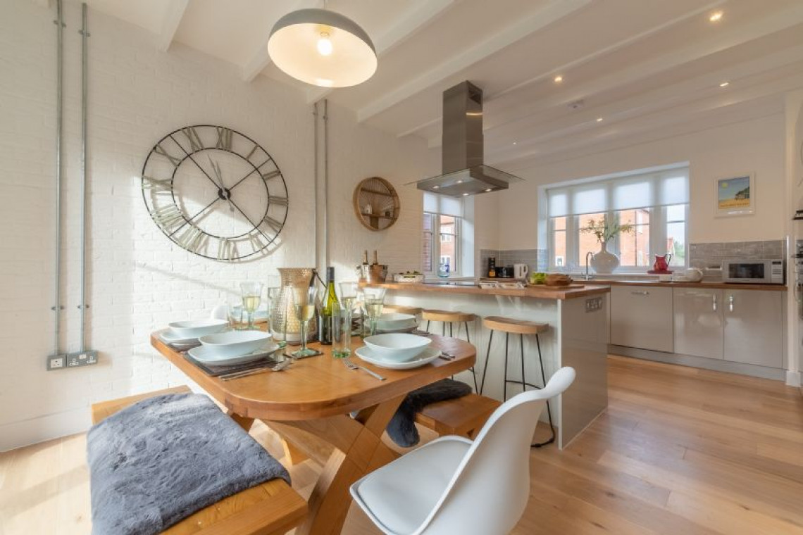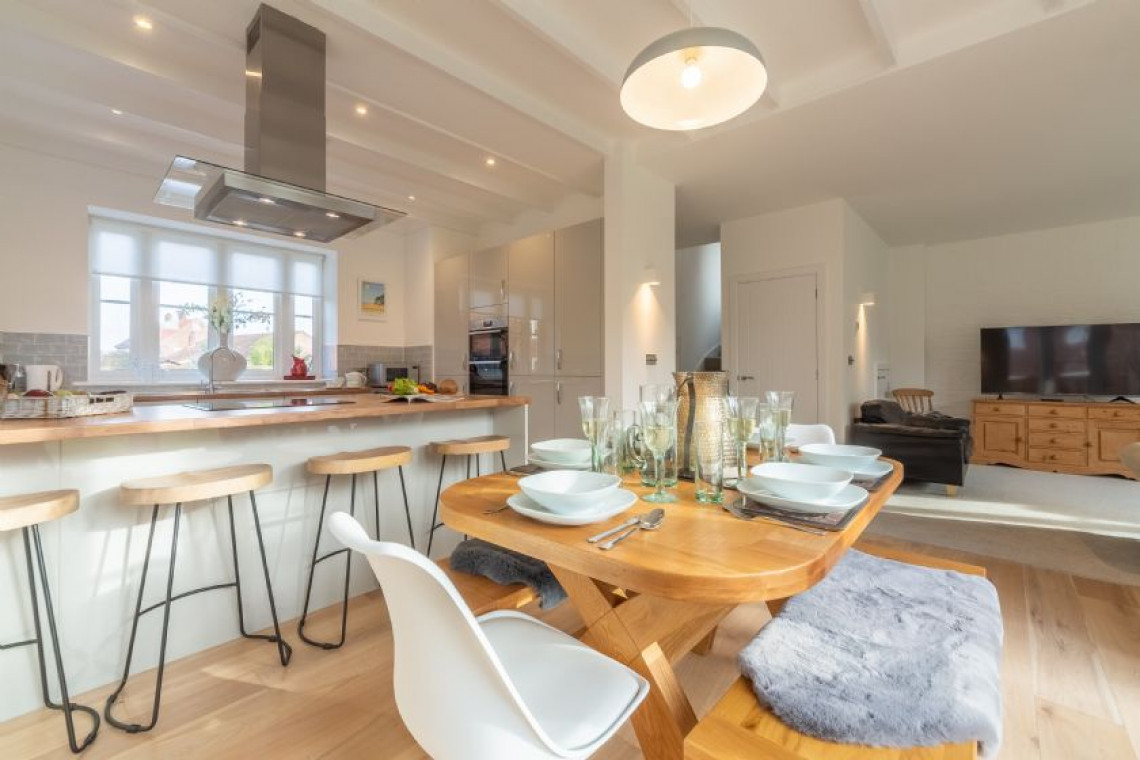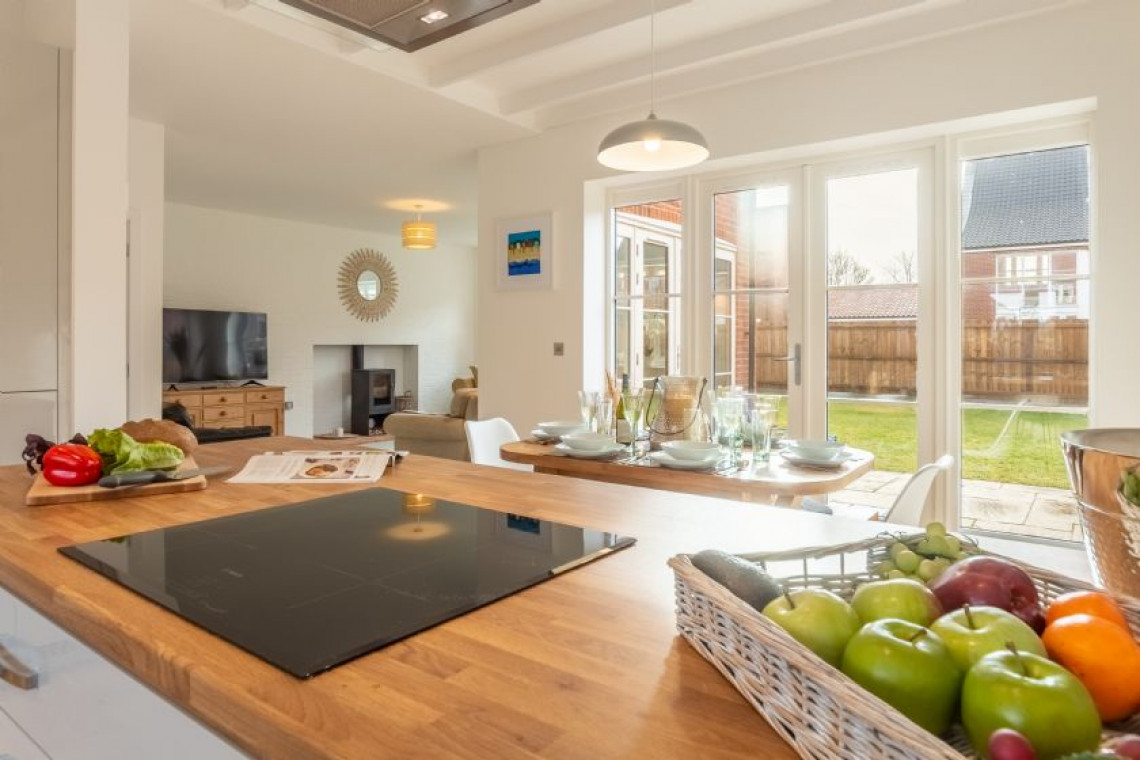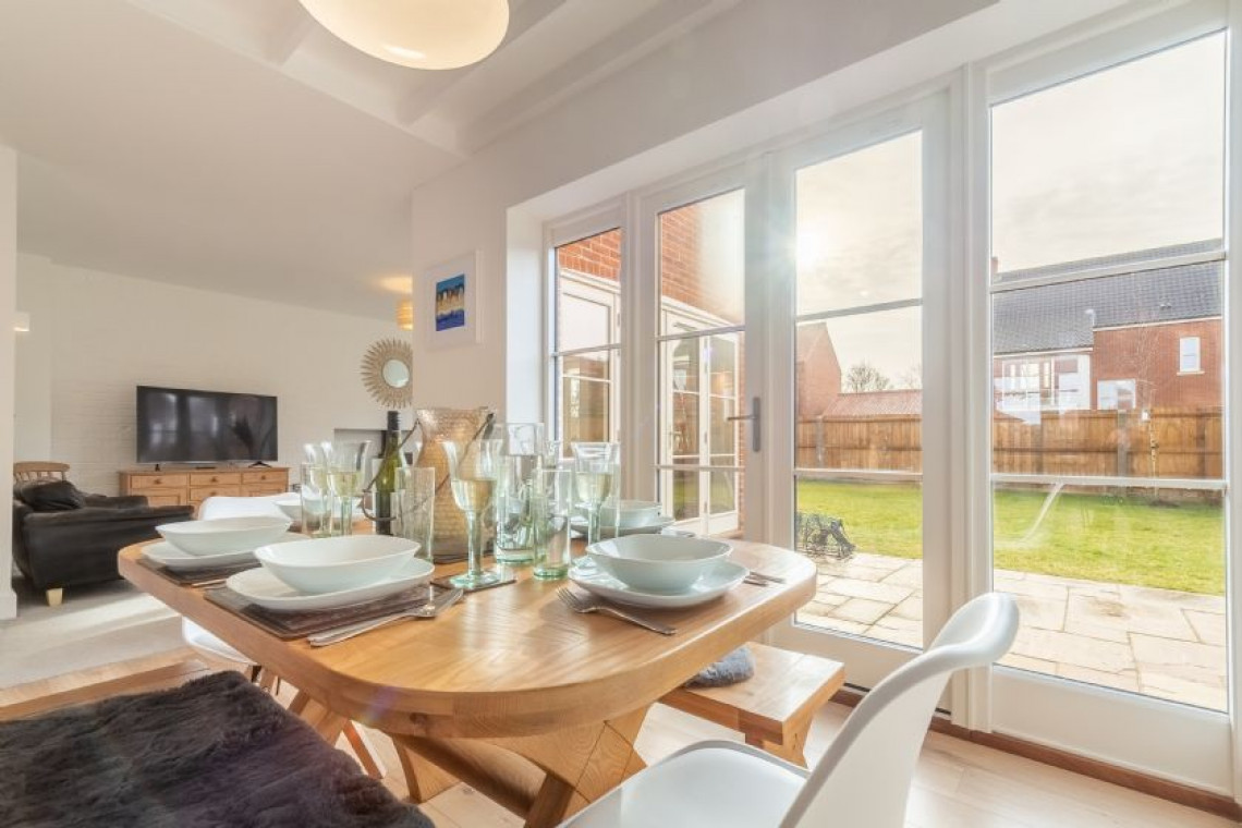 Built in 2020 and forming part of the prestigious Priory Mews enclave of properties designed by an award-winning firm of Norwich architects, Schaels Retreat is the perfect union of farmhouse-style heritage and modern-day luxury. Being one of only a handful of houses on the small development that embraces the traditional local flint frontage, once you are inside the house the overall ambience is one of relaxation, comfort and plenty of natural light. Predominantly open-plan on the ground floor with a very spacious and comfortable sitting room overlooking the garden on two sides, with french doors to open on sunny days and a large wood burning stove to light and boost the warmth on chilly ones. Turn the corner into the dining area and enjoy a meal at the table, sitting beside full length windows and a second set french doors that also lead into the garden, or take a seat at the breakfast bar for a quick snack or drink and chat while lunch or supper is being prepared in the fully-fitted well-equipped kitchen - keen cooks will sigh with delight on sight! If you are partial to a chilled glass of wine, there's a wine fridge too - why not try a delicious glass of Norfolk wine while you're here? Upstairs you'll find three dreamy bedrooms (two king-size and one double) and two smart bathrooms, one of which is en-suite. Outside you can enjoy summer days spent in the large fully enclosed rear south facing garden that will catch the sun's rays all day long and ensure that children and dogs with a wanderlust are kept safely in check.