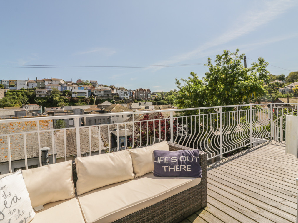 Resting within the bustling fishing town of Brixham, in Devon, is this stunning cottage-style apartment. The property provides a light, airy and extremely welcoming accommodation, set across two floors. The owners have created a beautiful feeling with a charming interior that offers a real home-from-home feel. You can enjoy a relaxing evening together as a family in the open-plan sitting room and take advantage of the provided DVD player and bring all your favourite film classics to watch. The dining area provides ample space to enjoy your lovingly prepared home-cooked meals, while catching up with the day's events. Furnished to a high-standard, the kitchen will inspire you to dust off those cook books and indulge in all the modern appliances at hand. Resting on the ground floor is a family bathroom with deluxe fittings, with an elegant bath and separate shower cubicle, so you can decide how best to prepare for your day. Follow the steps up to the first floor, hosting three well-presented and stylish bedrooms, consisting of a king-size, double and twin set up, as well as a shower room. The bedrooms have a range of furnishings, which compliment the light decor, and offer an abundance of space to store your personal items. Delight in the terrace decking area, where you can take a refreshing beverage and delight in the town views, or head down the spiral steps to the enclosed garden where the gate gives you direct access down to town and the harbourside. Discover the Berry Head National Nature Reserve, offering a plethora of wildlife to spot alongside your coastal walks, with an award-winning Guardhouse Café if you fancy a spot of lunch. Venture towards the lovely sand and shingle beach at St Mary's Bay, with footpaths for some beach walking with your pet. Venture towards the National trust property of Coleton Fishacre house and Gardens, a 1920s country house set in 24-acres of landscaped gardens and is a delightful choice for exploring a spot of culture. Brixham itself offers a large number of pubs, restaurants, shops and supermarkets for all of your amenities. Return to Seadrift for a relaxing break to the seaside. Three bedrooms: 1 x king-size, 1 x double and 1 x twin. Ground floor bathroom with roll-top bath, walk-in shower, basin and WC. Shower room with shower, basin and WC. Kitchen. Living/dining room with electric stove. Amenities for Rental Electric stove Electric oven and hob, microwave, toaster, kettle, coffee machine, fridge, freezer, TV with Netflix, DVD player and WiFi Fuel and power inc. in rent Bed linen and towels inc. in rent Travel cot and highchair Roadside parking is available and is found a short walk from the property, also possible to purchase weekly permits for local carparks Terrace decking area with furniture and small enclosed garden with seating One well-behaved pet welcome Sorry, no smoking Shop 0.4 miles and pub 0.1 miles