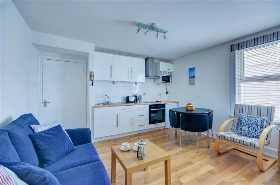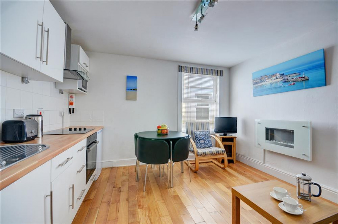 Located in Draycott Terrace St Ives, this well-equipped, prettily furnished, compact, first floor apartment, sleeping four, is a short walk from Porthminster Beach and the town.
