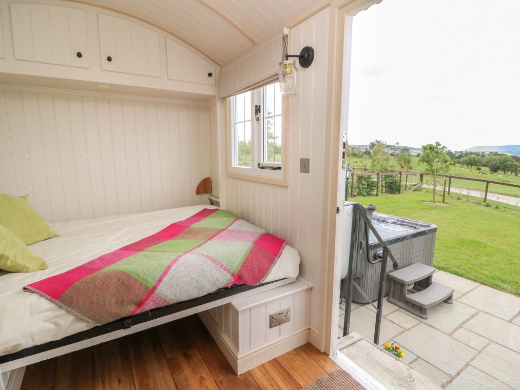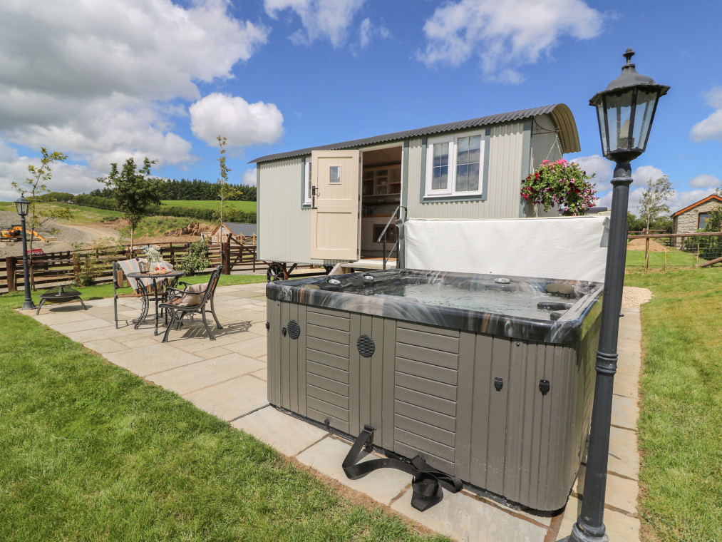 Rhayader 2 miles. Shepherd's View is a contemporary hut embracing a tranquil, scenic countryside location near the fascinating market town of Rhayader, Powys. Boasting homely accommodation and with a luxury hot tub to make the most of.This is the perfect romantic getaway for you and your loved one. Enter the property and feel instantly welcome by its immaculate presentation and warming tone. Kick back and relax on the comfy bench seat whilst watching the TV, or simply appreciating the wonderful countryside views through the beautiful stable door. The compact kitchen area is well-equipped and finished with pristine, neutral fixtures and fittings. To the right of the hut the cosy bench can be transformed into a double bed, also looking out towards the picturesque Rhayader countryside, the perfect sight to wake up to. Get ready for your day in the shower room with shower, basin and toilet facility. The outdoor area here at Shepherd's View is perhaps its finest asset, take a seat on the patio furniture or even in your own luxury hot tub with a glass of bubbly and revel in your location. Rhayader, just two miles away, is a stunning market town offering a fine selection of quality amenities and a museum and art gallery. The surrounding countryside provides a multitude of scenic walks and cycle paths to make the most of. An eccentric hut in a fabulous countryside location. Note: This can be booked with 976618 Woodland View, 932323 Valley View, 963226 Meadow View, 976617 Hillside View, and 976810 Mountain View. All ground floor. Open plan studio accommodation with one double bed, kitchen, dining area and sitting area. Shower room with shower, basin and WC. Amenities for Rental Electric heating Electric oven and hob, microwave, fridge, TV with Freeview, WiFi Fuel and power inc. in rent Bed linen and towels inc. in rent Off road parking for 2 cars Enclosed lawn and patio with hot tub Two well-behaved dog welcome Sorry, no smoking Shop and pub 1.5 miles Note: Four steps up to property Note: The bed pulls down on top of the sitting area Note: Babes-in-arms only Note: Hot tub is cleaned on changeover and can take up to 12 hours to be back to optimal temperature Note: Check in is 4pm.