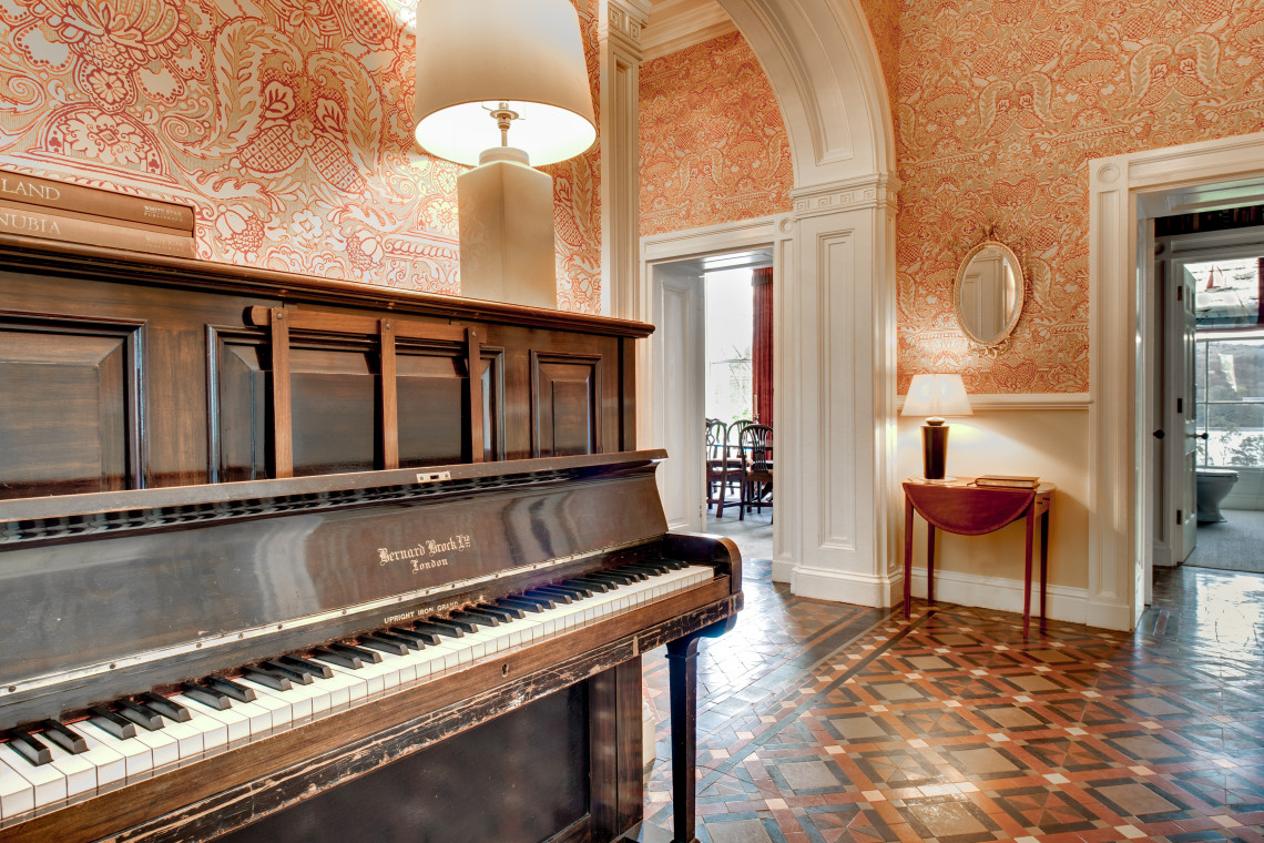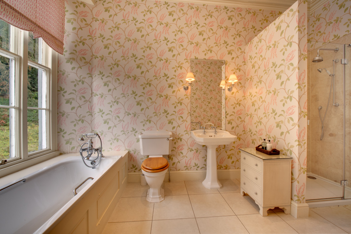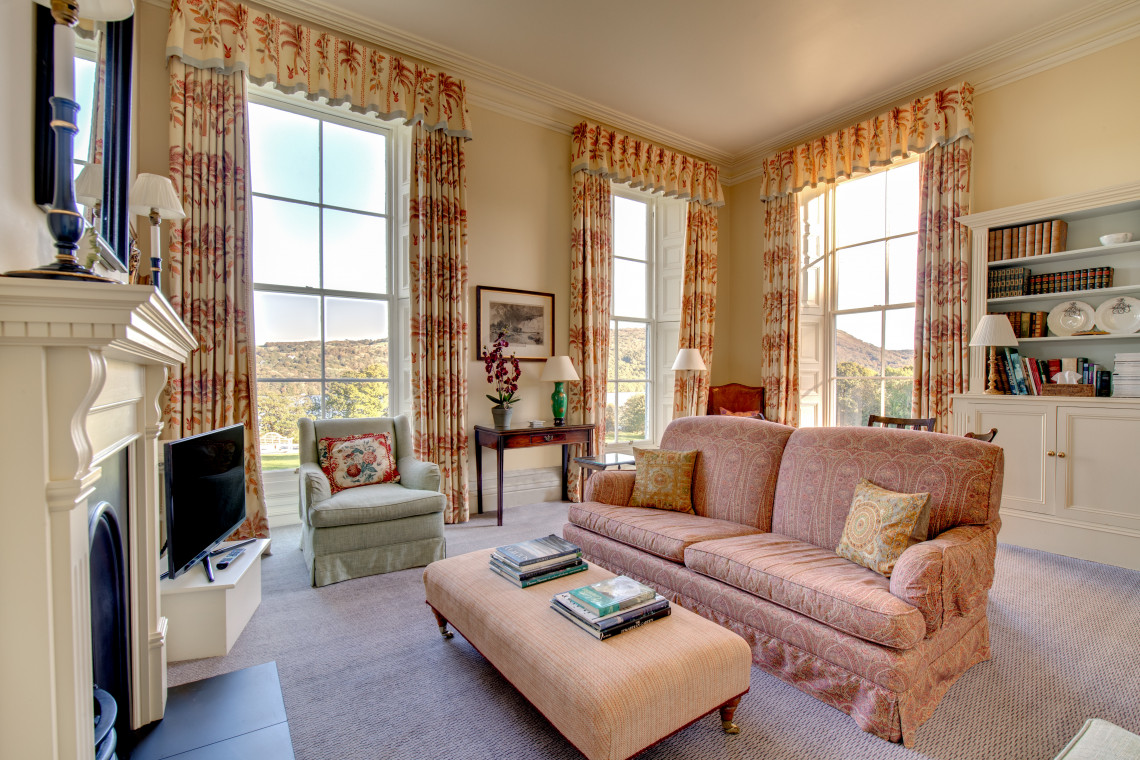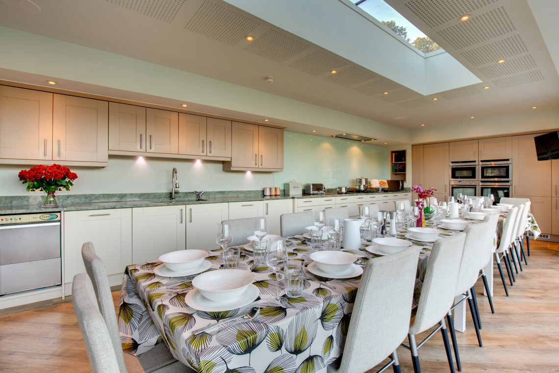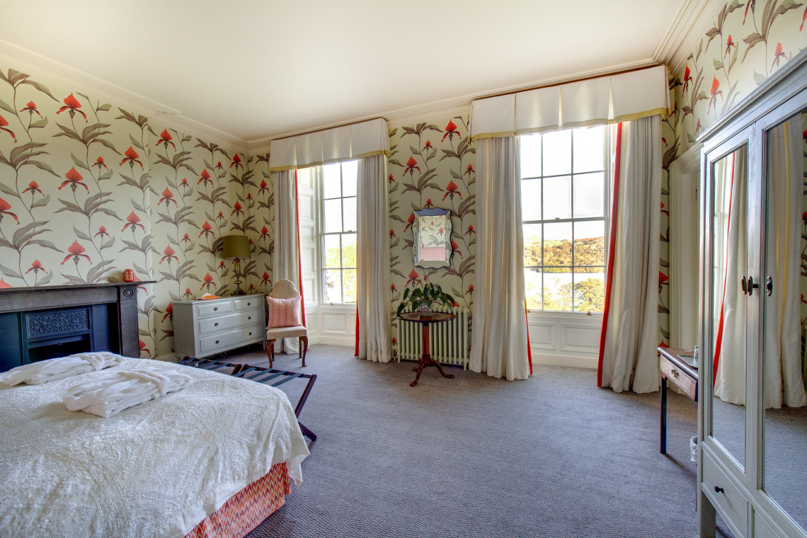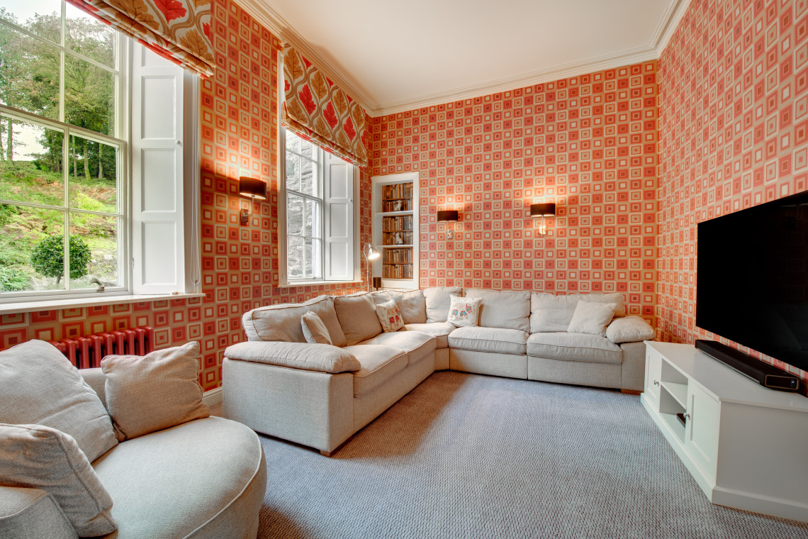 On the ground floor, the modern kitchen has a contemporary feel with floor to ceiling glass windows to take this marvellous location. This well-equipped kitchen is fully furnished to accommodate your party size in equipment and has a large table to seat 18. Having a special meal? , then step next door to the splendid richly decorated more formal dining room with period fireplace, chandeliers, mahogany dining table with antique furnishings. There are also two grandiose reception rooms on the ground floor, one with a working period fireplace to relax and take in this truly special place inside and out. Finally downstairs there is a third reception room with comfortable seating and a large TV for your further enjoyment.