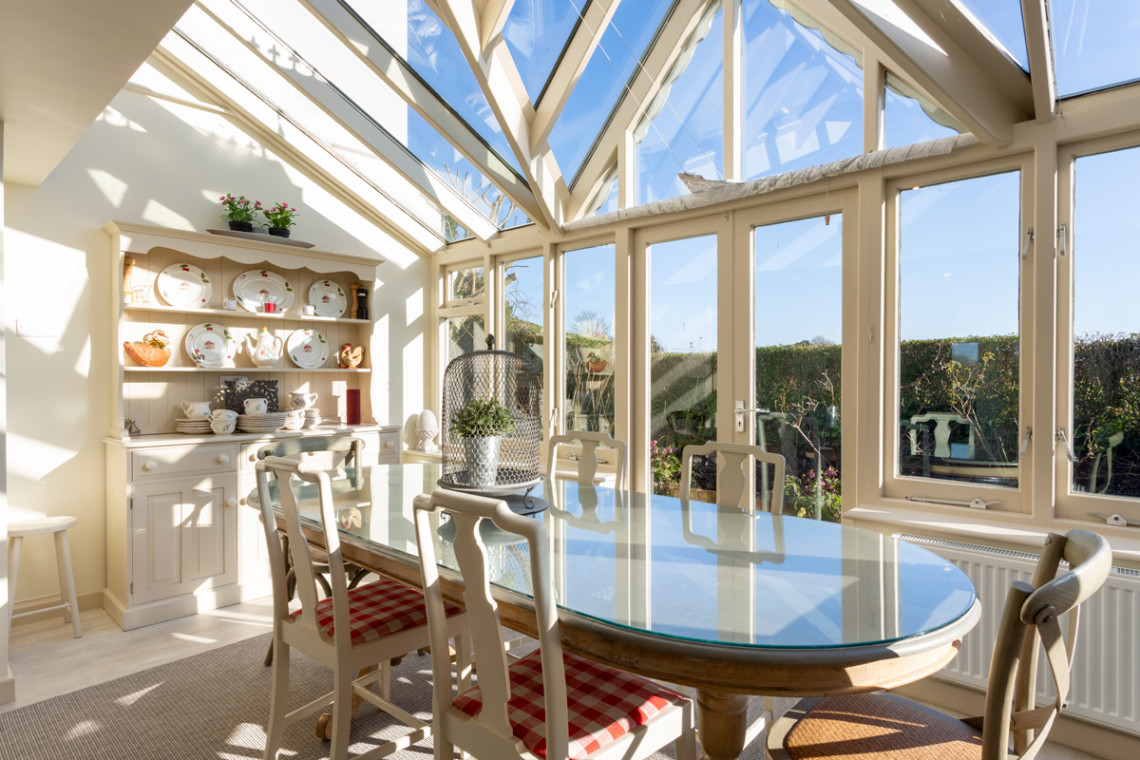 - Conservatory dining area with countryside views