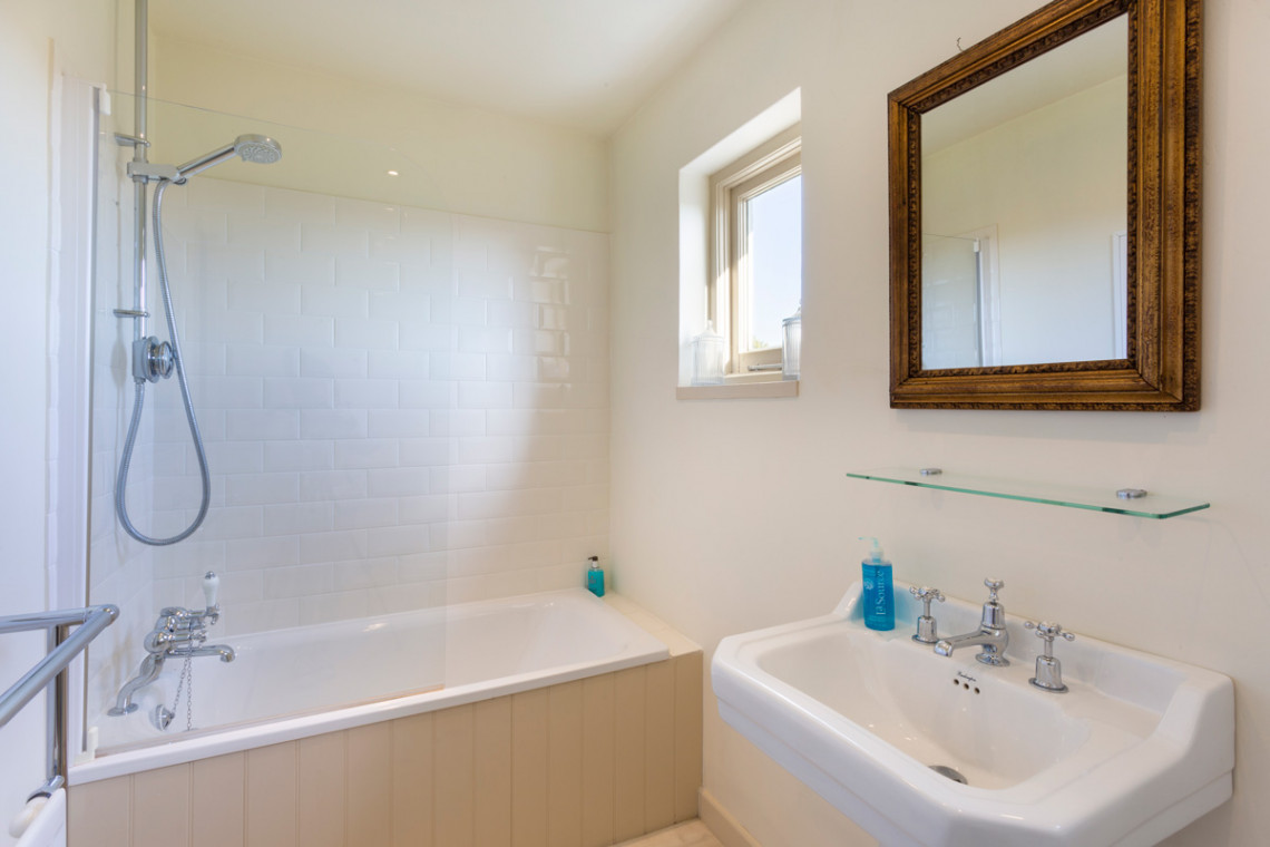Upstairs on the first floor are the five bedrooms. The master bedroom comes complete with super king-size bed, a private balcony where guests can enjoy the countryside views and a luxury en-suite bathroom which boasts a roll-top bath and a walk-in shower. The remaining four bedrooms, a king-size double, two twin rooms and a single room, share the use of two family shower rooms.